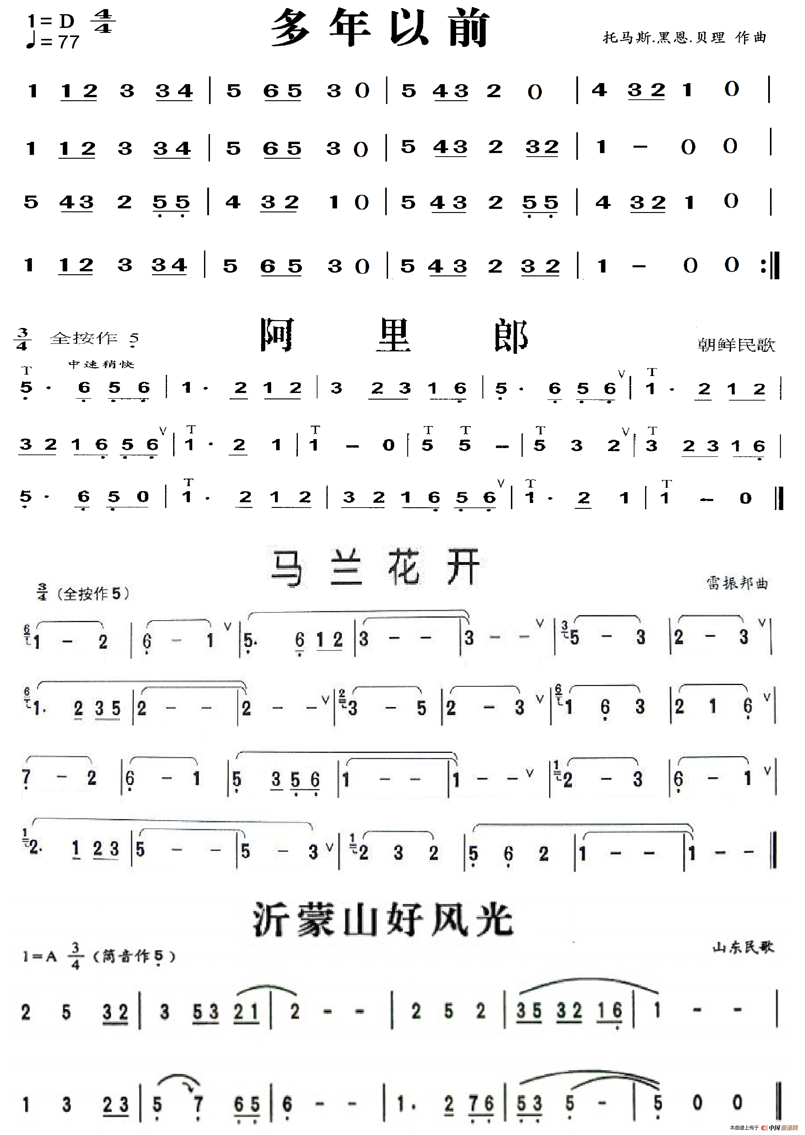 葫芦丝练习曲04(歌曲4首 )相关五线谱