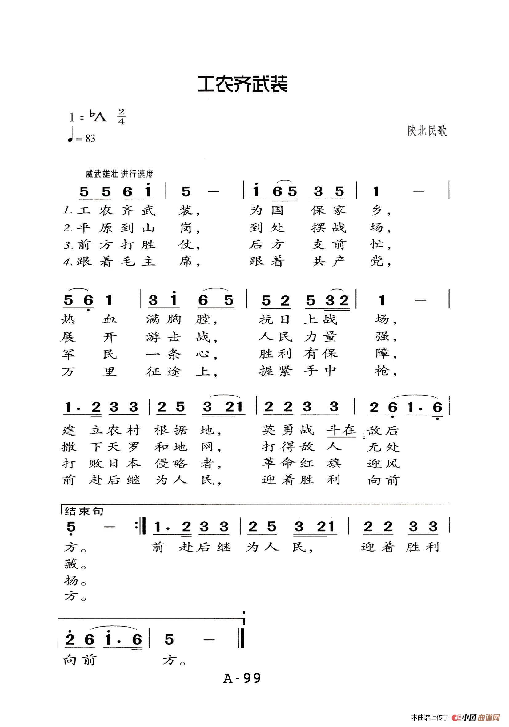 工农齐武裝(老人适用)相关五线谱