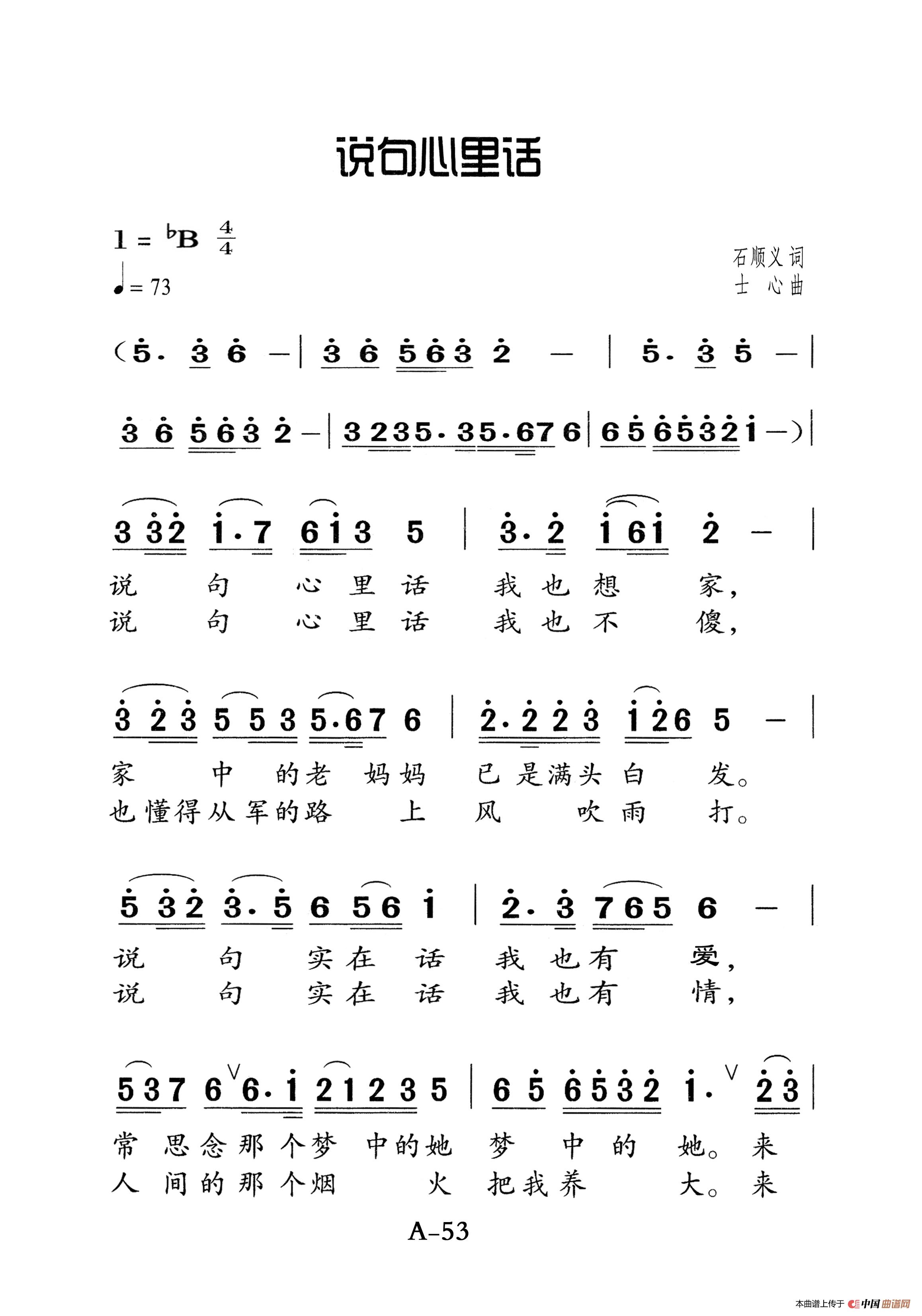 士心曲谱推荐在中国的大地上(正谱)向着太阳(大字老人适用)在中国的大地上说句心里话走向未来你会爱上它走近你、走近我龙虎英雄(电视系列片《中华热土》主题歌)说句心里话(手风琴伴奏谱)小白杨(梁上泉词 士心曲、线简谱对照版)唰啦啦下起小雨小白杨说句心里话小白杨(手风琴伴奏谱)小白杨小白杨(架子鼓、简谱+鼓谱)说句心里话在这欢乐的夜晚军旅歌曲100首:小白杨我们是黄河泰山(架子鼓、简谱+鼓谱)