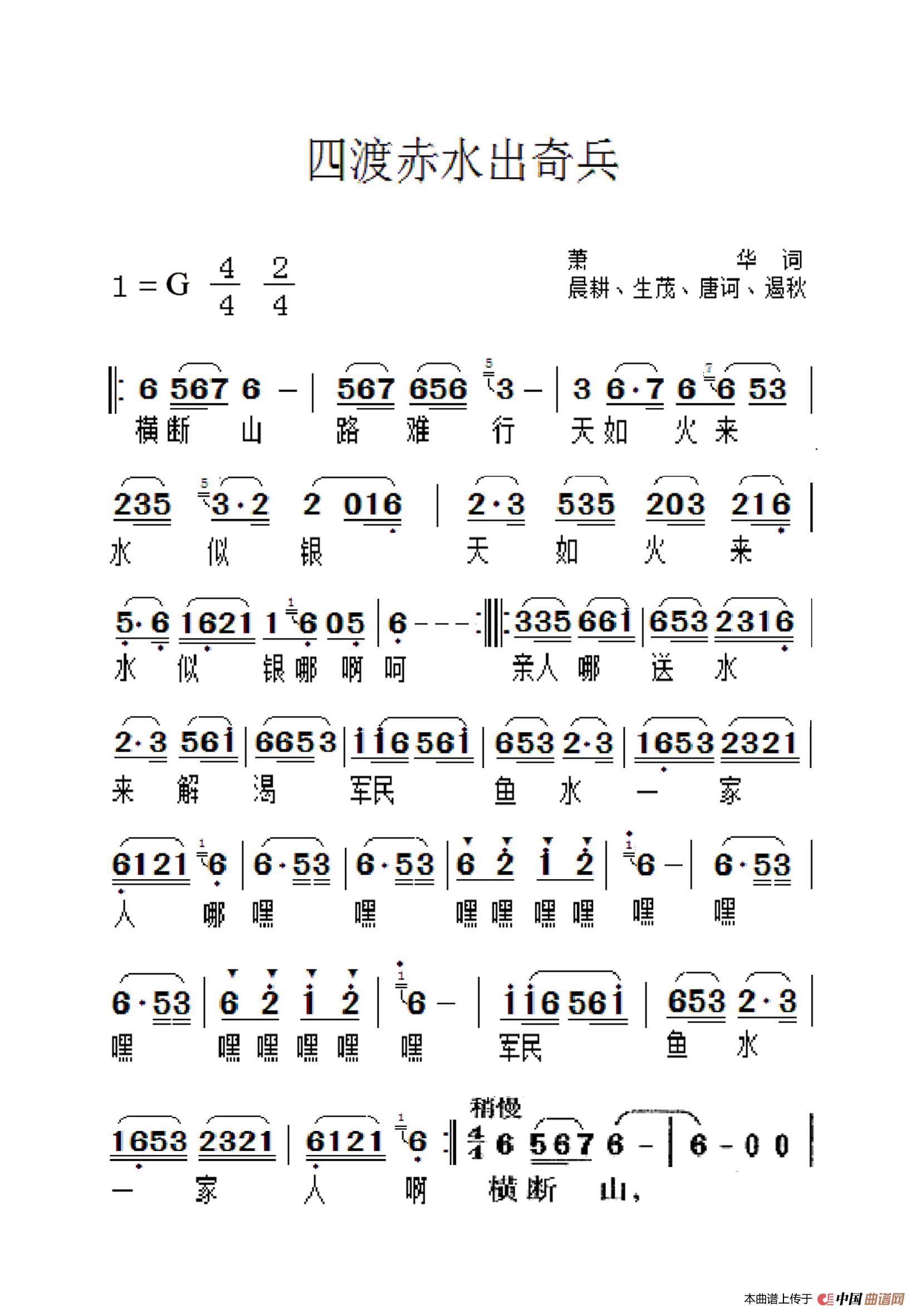 四渡赤水出奇兵(老人适用)相关五线谱