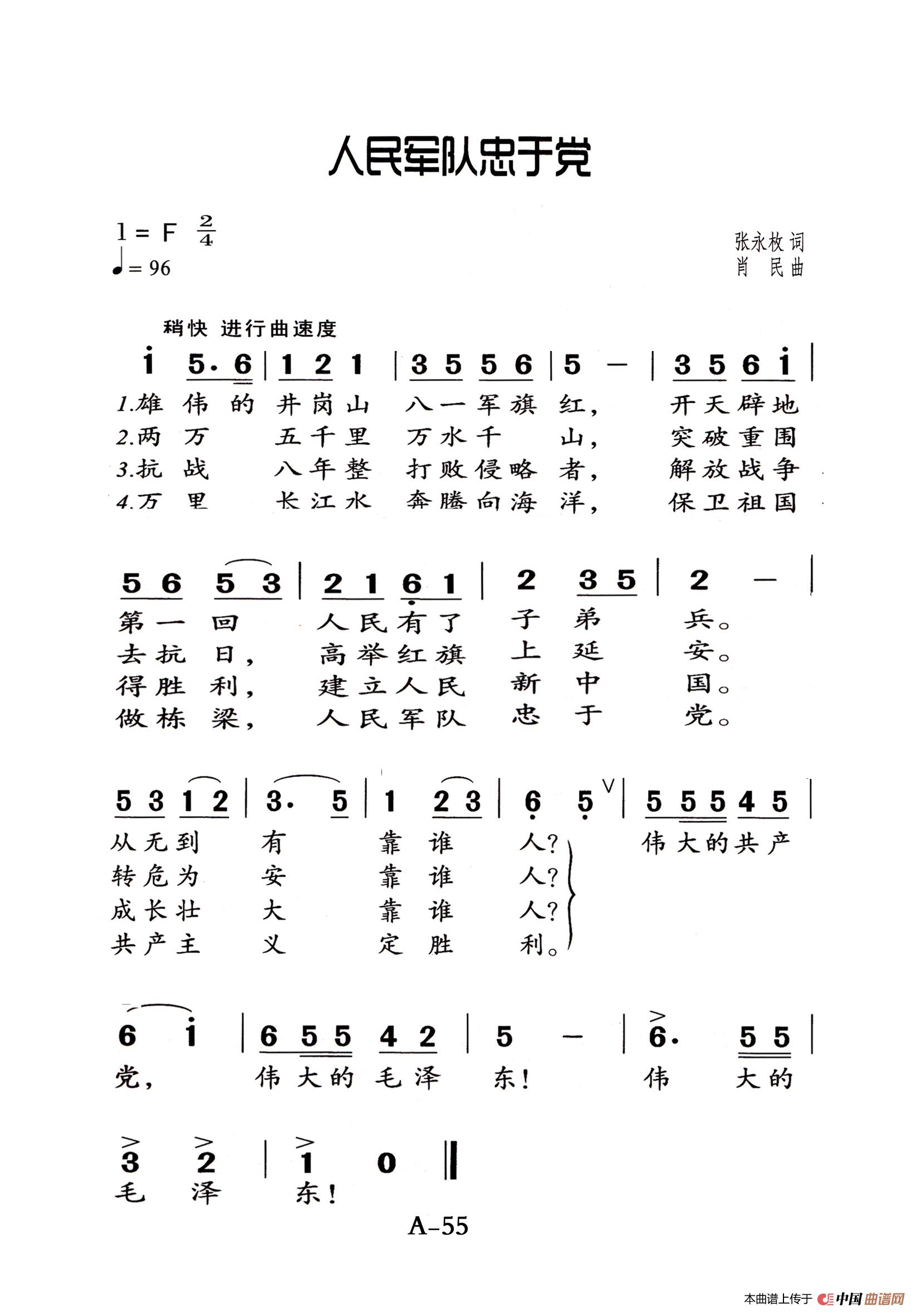 肖民曲谱推荐人民军队忠于党(军乐演奏主旋律简谱)人民军队忠于党(军乐旋律简谱)人民军队忠于党火把节之夜人民军队忠于党(张永枚词 肖民曲)朝霞灿烂军歌金曲:人民是靠山(瞿琮词 肖民曲)军旅歌曲100首:人民军队忠于党人民是靠山(瞿琮词 肖民曲)人民军队忠于党奔向前线人民军队忠于党军歌金曲:人民军队忠于党祖国,祖国,我爱你(蒲生、翟琮词 肖民曲)人民军队忠于党