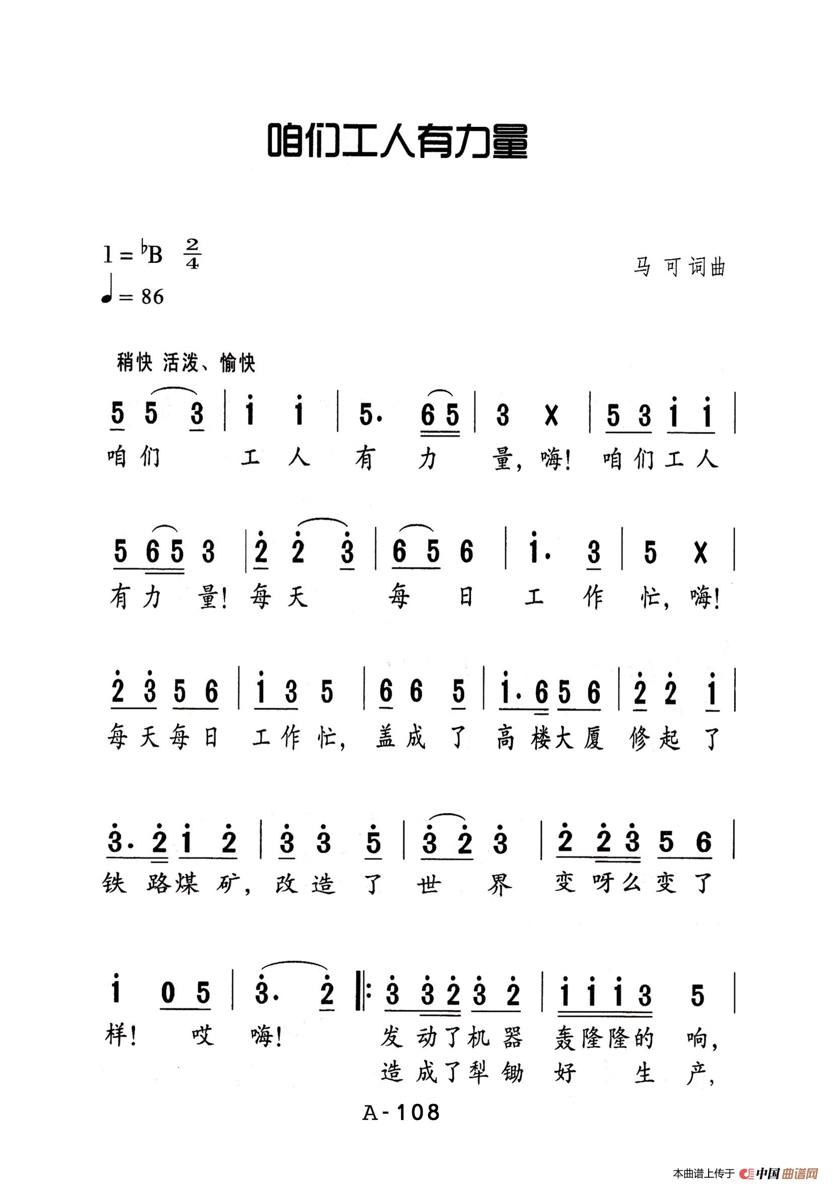 马可曲谱推荐清粼粼的水来蓝莹莹的天(歌剧《小二黑结婚》选曲)咱们工人有力量-大号分谱咏梅(传记纪录影片《梅兰芳》主题歌)歌剧《白毛女》全剧之第七十三曲(五幕三场)北风吹(歌剧《白毛女》选曲)歌剧《白毛女》全剧之第二十五曲(一幕三场)白毛女选曲歌剧《白毛女》全剧之第四十一曲(二幕二场)捡豆豆(马可曲、五线谱)南泥湾(中英文对照)南泥湾秋收(故事影片《白毛女》插曲)歌剧《白毛女》全剧之第五十曲(三幕三场)杨白劳(正谱)当兵就要当英雄(胡宏伟词 马可一曲)小喜鹊(贺敬之词 马可曲)咱们工人有力量歌剧《白毛女》全剧之第三十七曲(二幕一场)六一国际儿童节过年(管乐五重奏)1-6