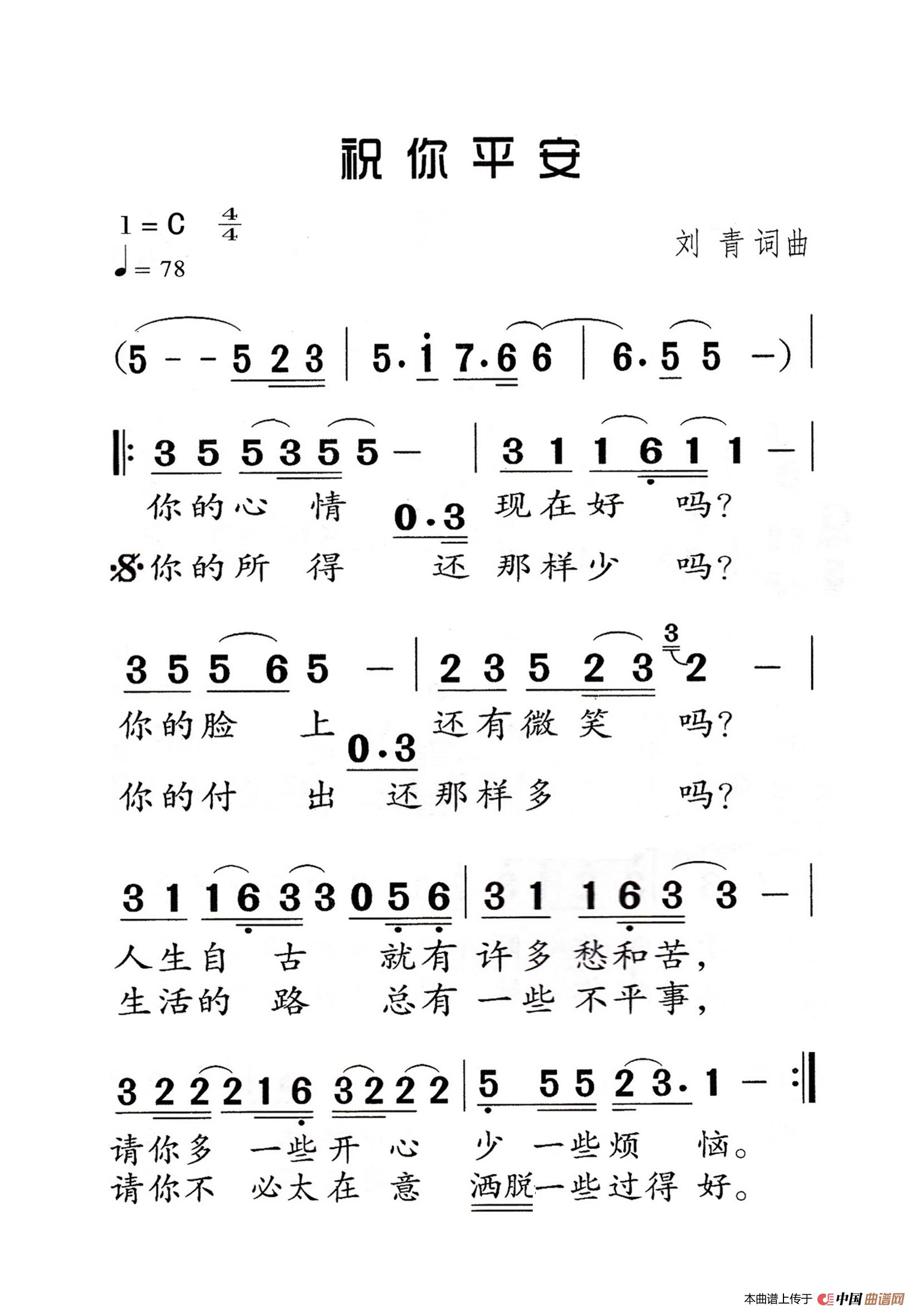 刘青曲谱推荐你好祖国东方商人(电视剧《东方商人》插曲)踏歌黎平军中望月高天上流云当万绿飞翠的时候人间第一情你好吗,亲亲的爱人锦绣年代人间第一情(黑鸭子组合)永远是朋友五星红旗(天明词 刘青曲 冯晓阳编合唱)千重山万重水永远的旗帜永远是朋友(架子鼓、简谱+鼓谱)亲爱的人(2008年央视春节联欢晚会歌曲)越人歌(先秦词 刘青曲)幸福在中国(李勤词 刘青曲)履行党章赋予职责金话筒世界(电视系列片《金话筒世界》主题歌)