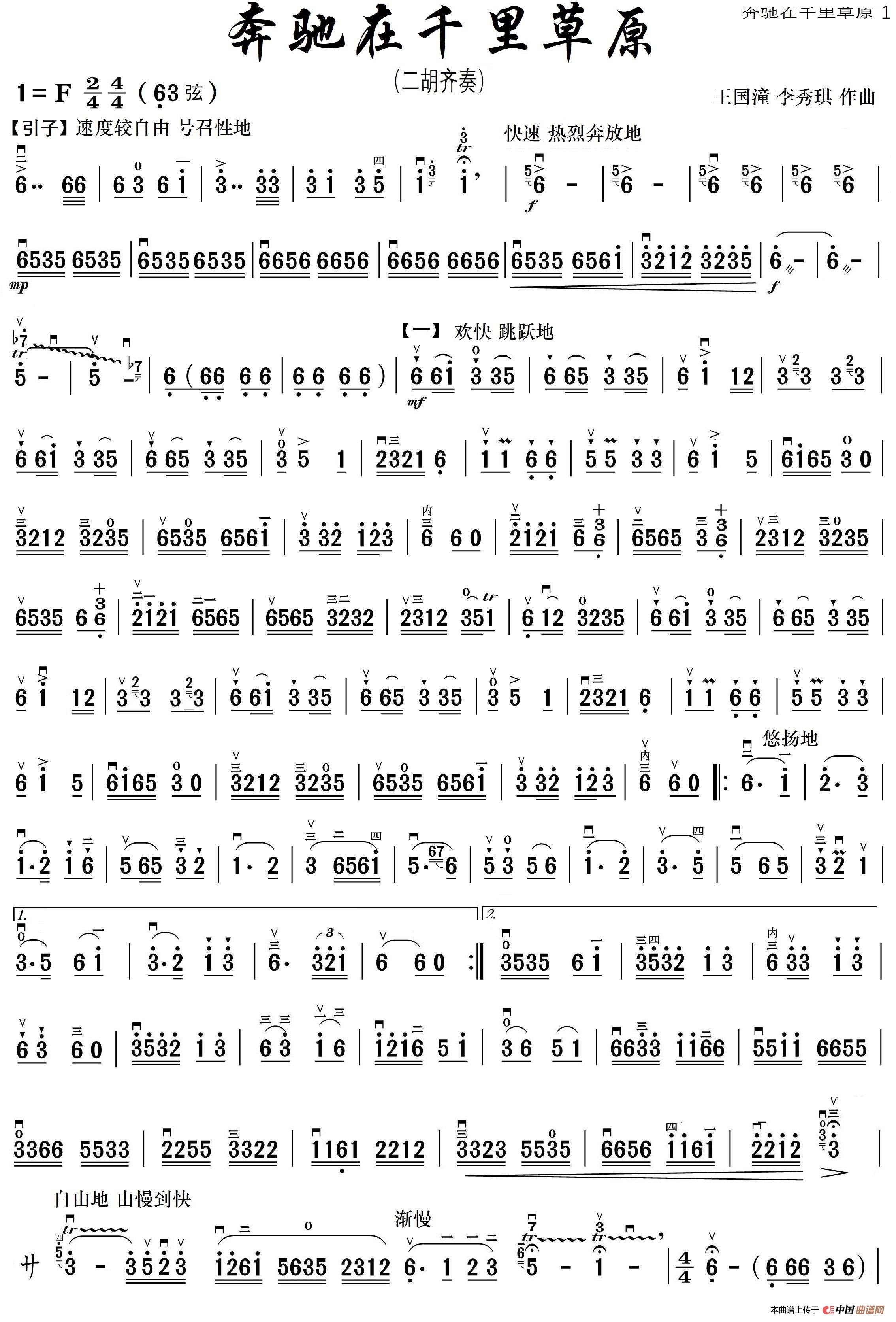 奔驰在千里草原(王健民制谱版)