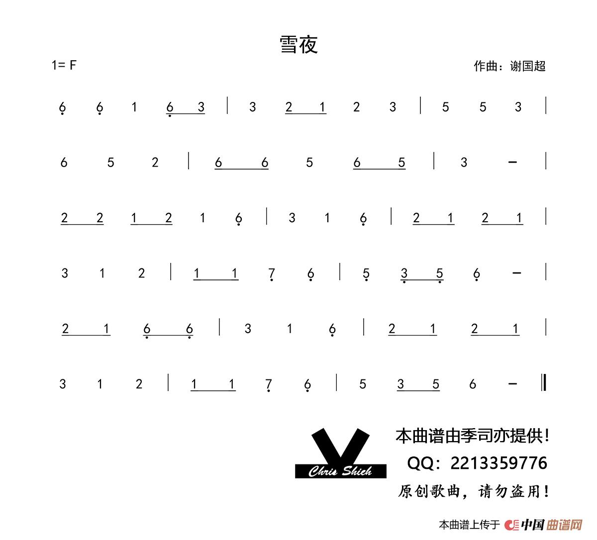 雪夜相关五线谱