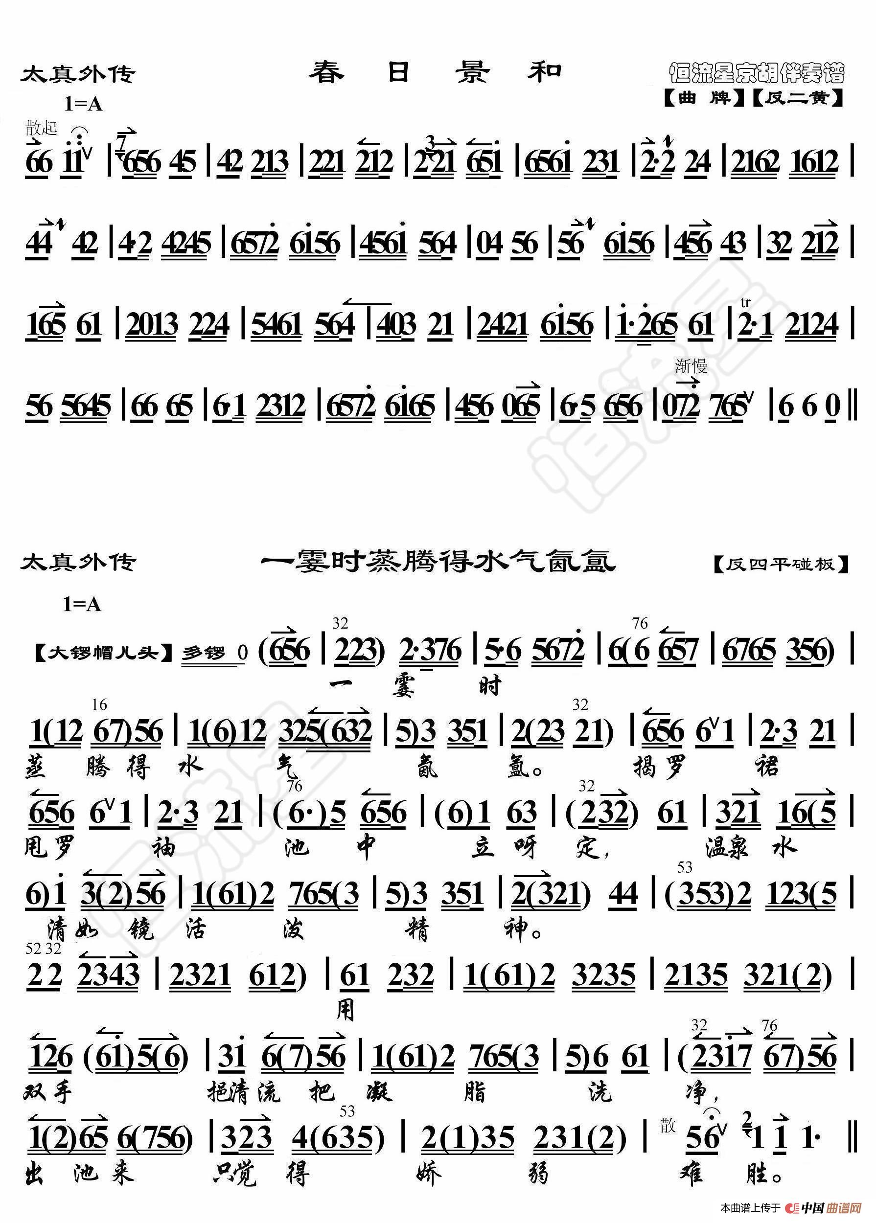 - 遇皇后·宋王爷坐江山人称有道(京胡伴奏谱)