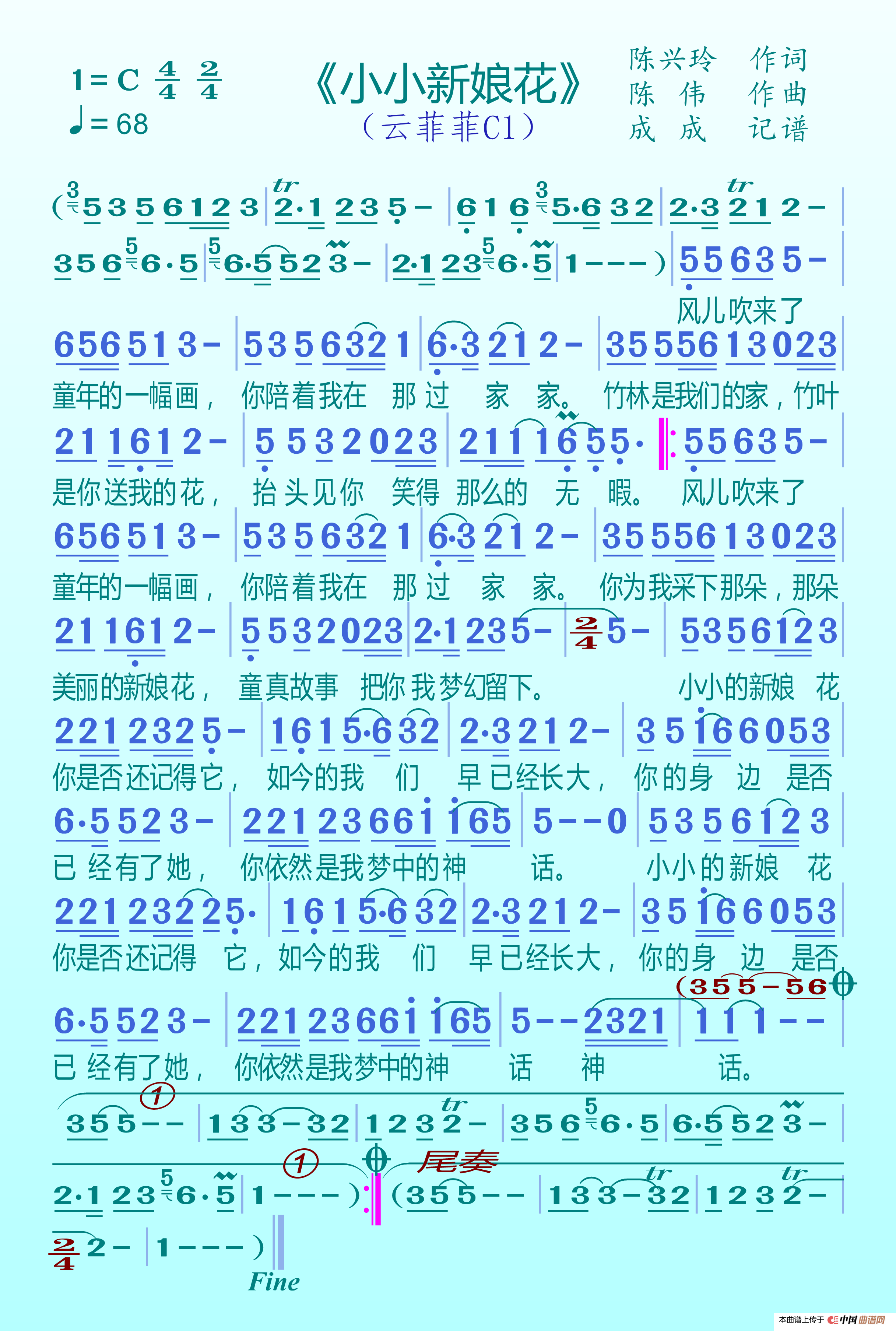 陈伟曲谱推荐除了心痛我一无所有千里眼顺风耳我不怪你也不会恨你听心(最新修正版)(根据杭娇演唱记谱)我在红尘中遇见你只想一个人过荔园小区之歌天天把歌唱(陈伟 词曲)想做你词中那个人四季恋人亲爱的你还爱我吗静不下来梦缠绵情人正传就这样成为你的回忆爱情曾经等过你思念(李倩仪词 陈伟曲)志摩与徽因深圳到北京的爱情爱的血泪史
