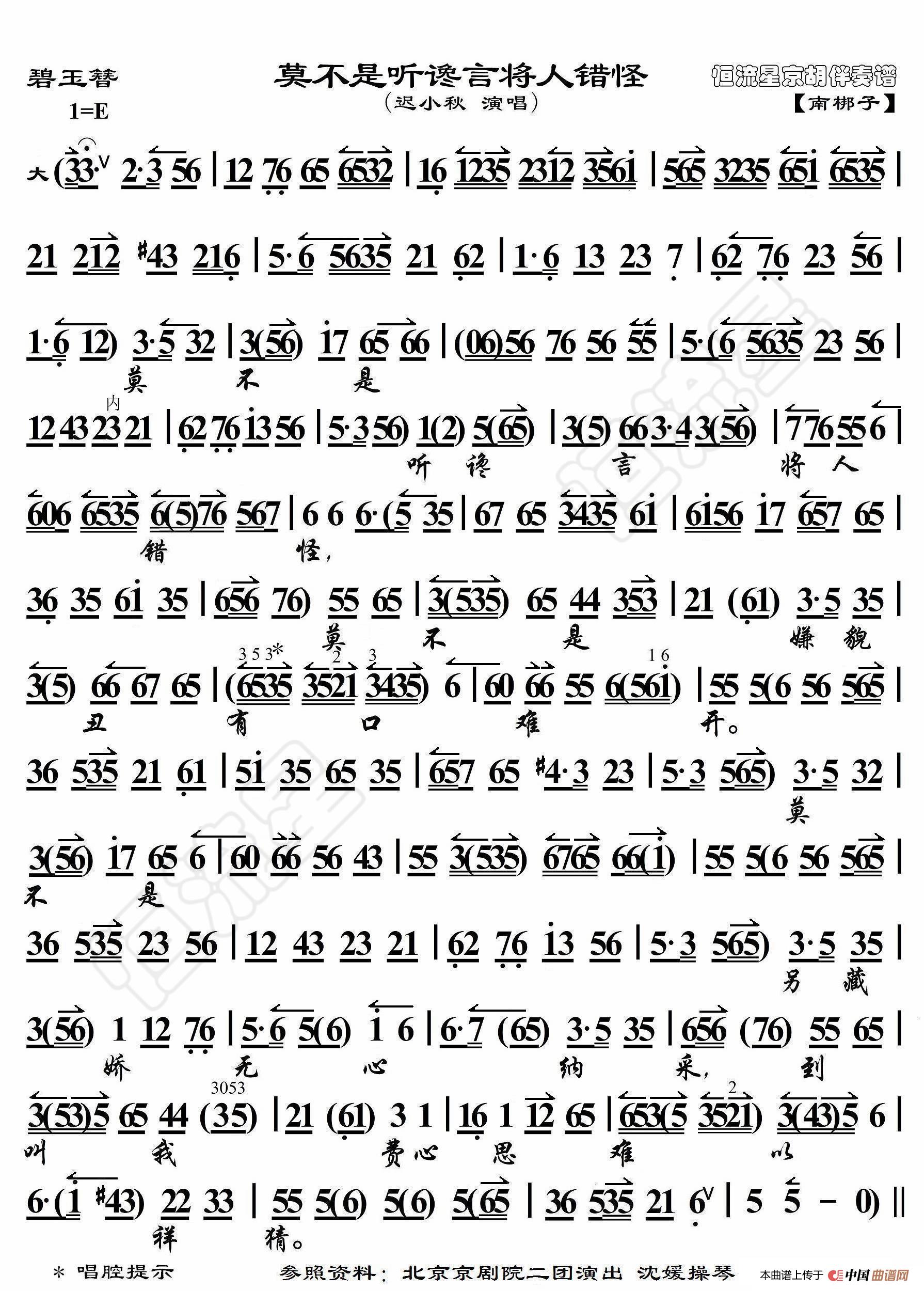 - 荒山泪·谯楼上二更鼓声声送听(京胡伴奏谱)