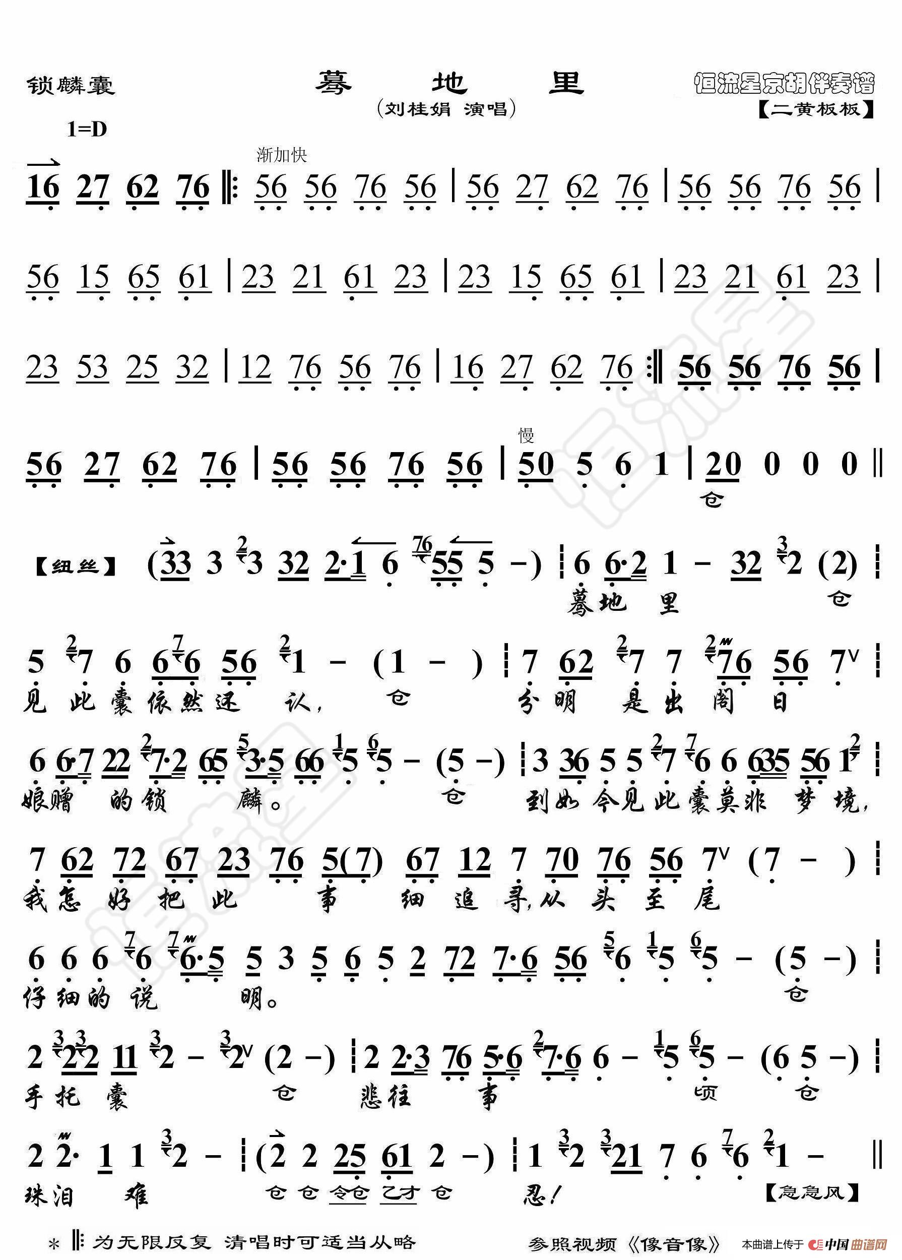 - 鸳鸯冢·只见那少年人低头下拜(京胡伴奏谱)