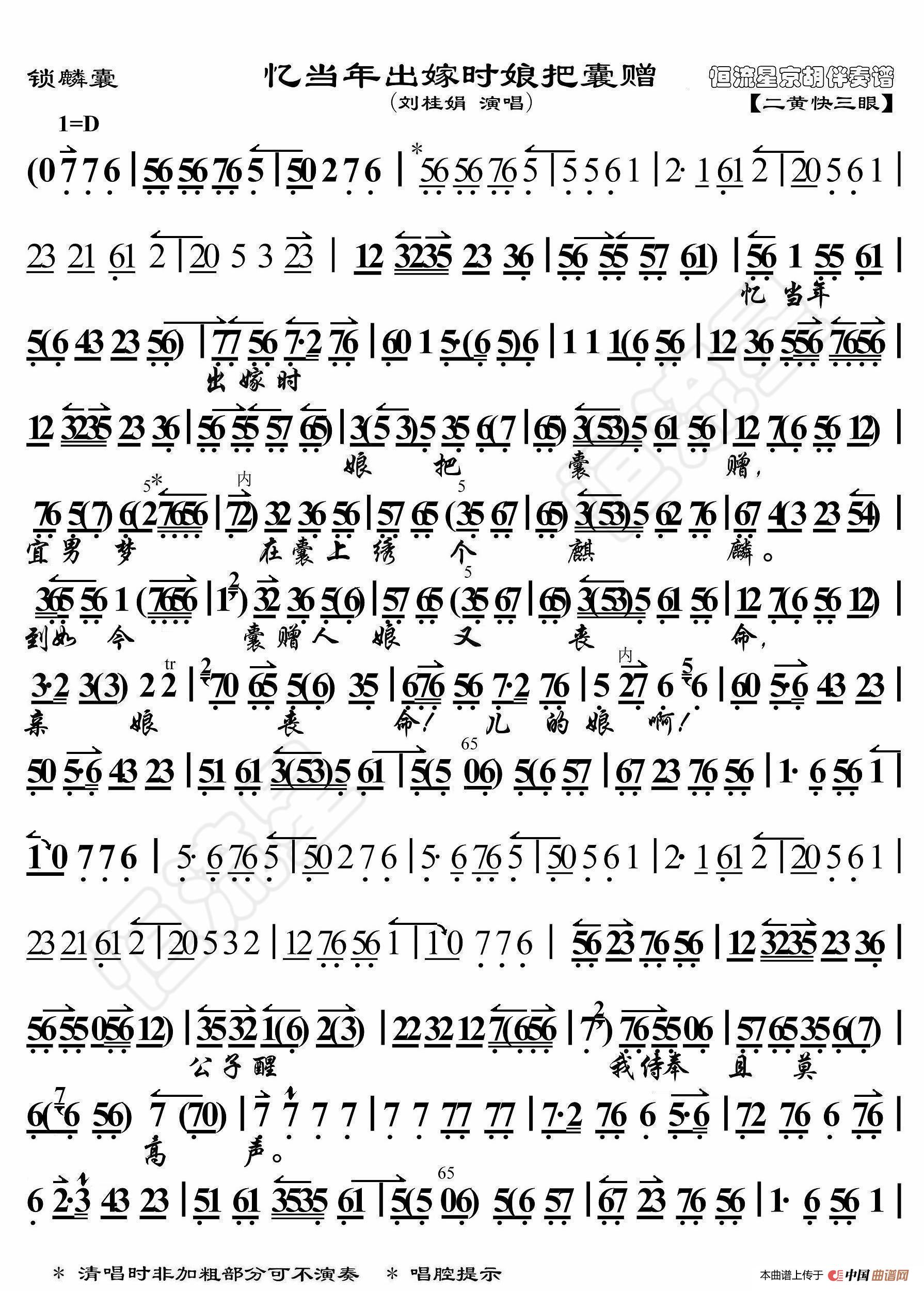 - 赤桑镇·见嫂娘只哭得泪如雨降(京胡伴奏谱)