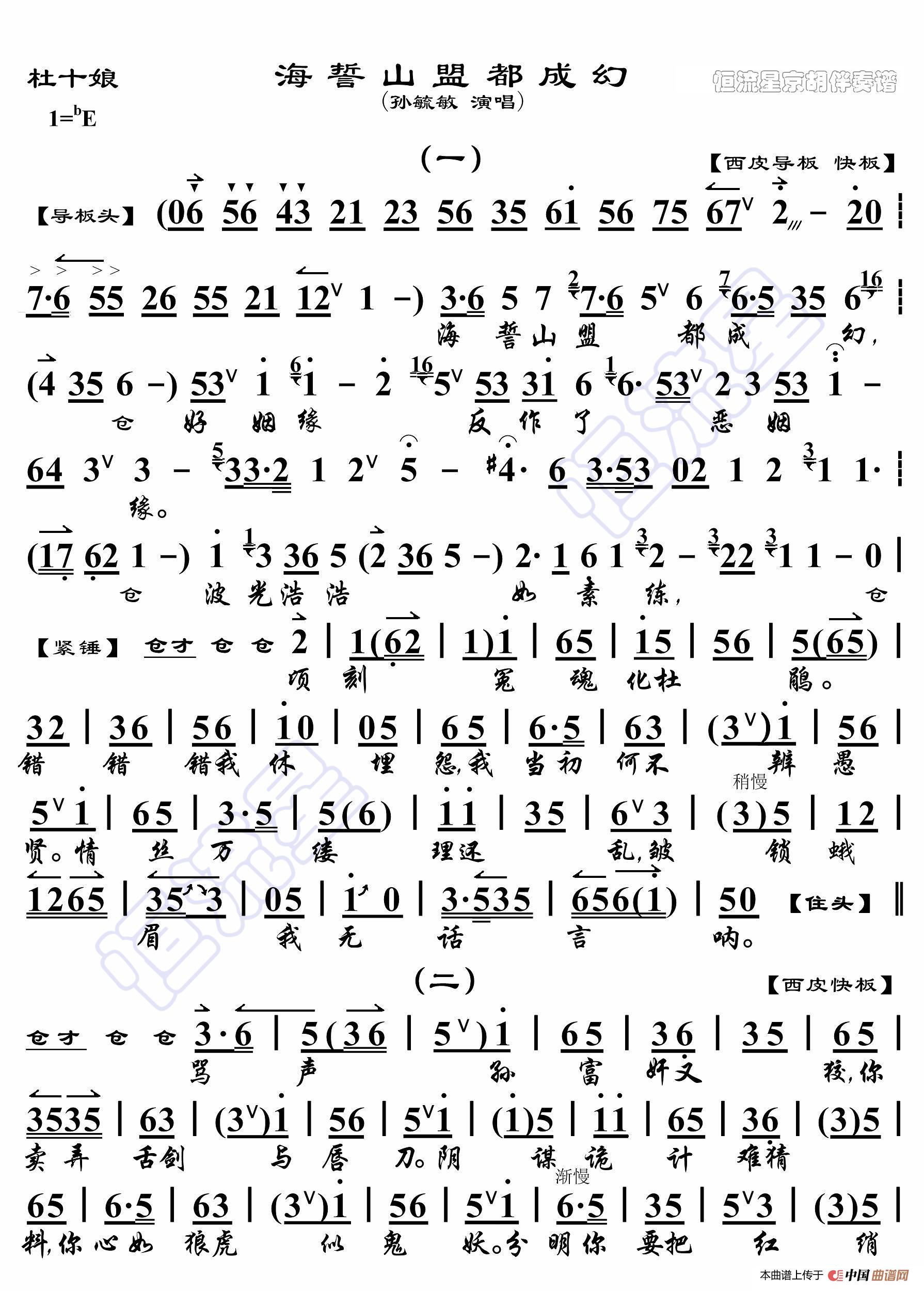 - 杜十娘·月色苍茫初更后(京胡伴奏谱)