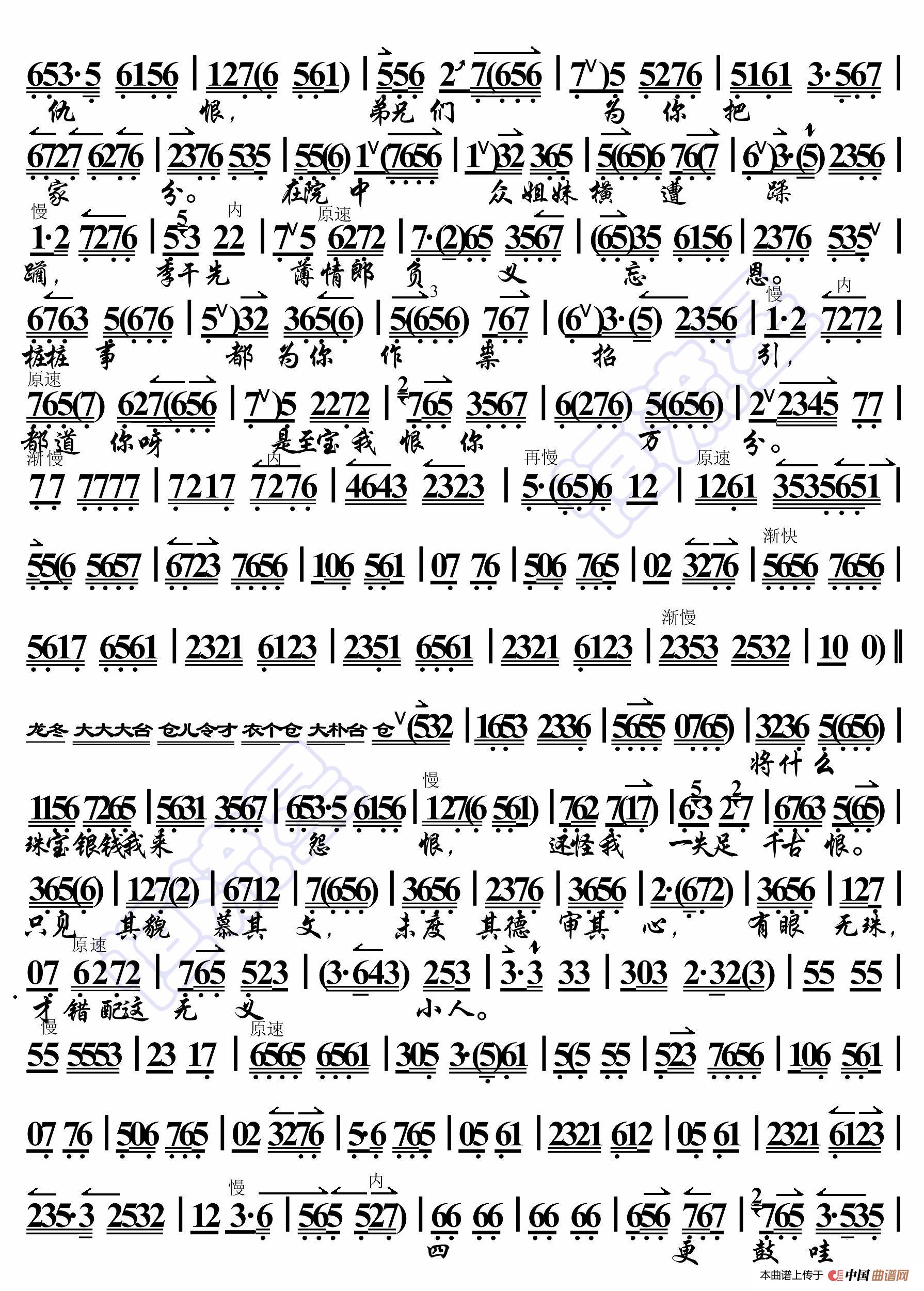 - 碧玉簪·无端巧计将人陷(京胡伴奏谱)
