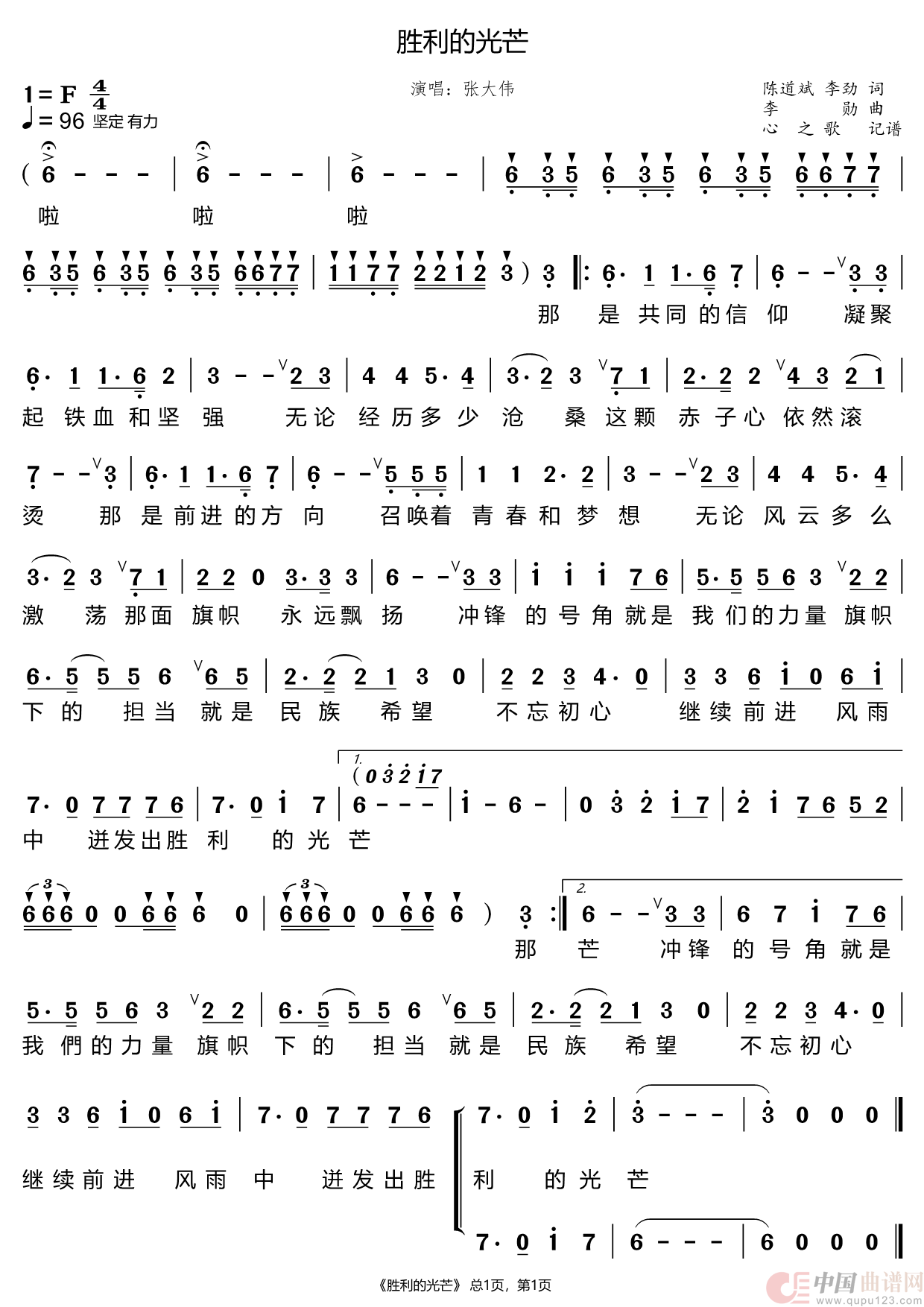 胜利的光芒(张大伟)相关五线谱
