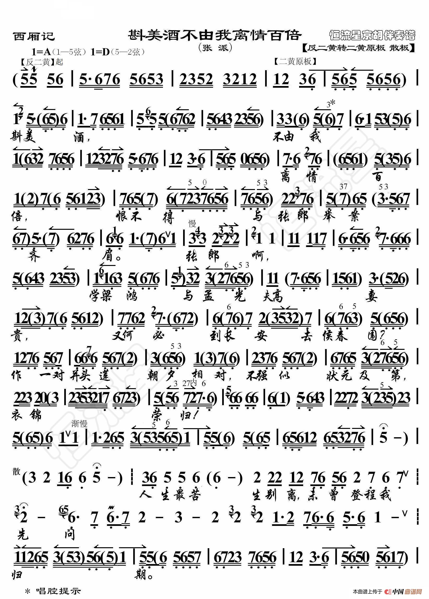 - 渭水河·谯楼打罢了二更鼓响(京胡伴奏谱)