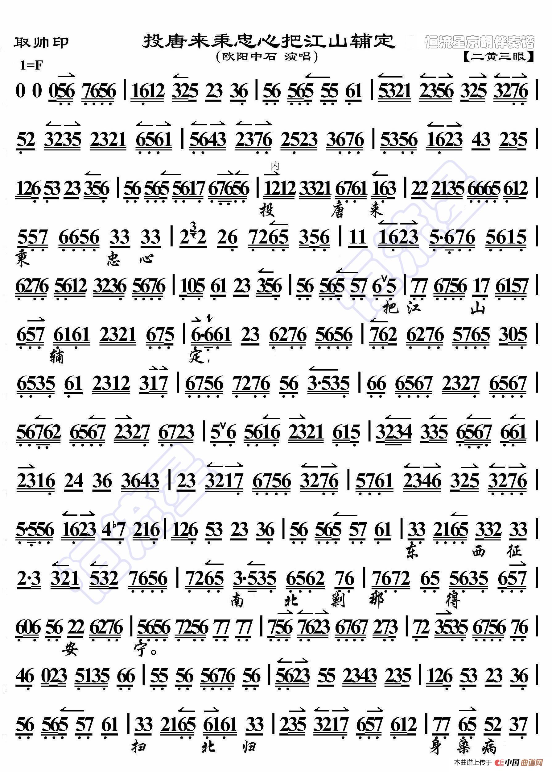 - 二进宫·李艳妃坐昭阳自思自想(京胡伴奏谱)