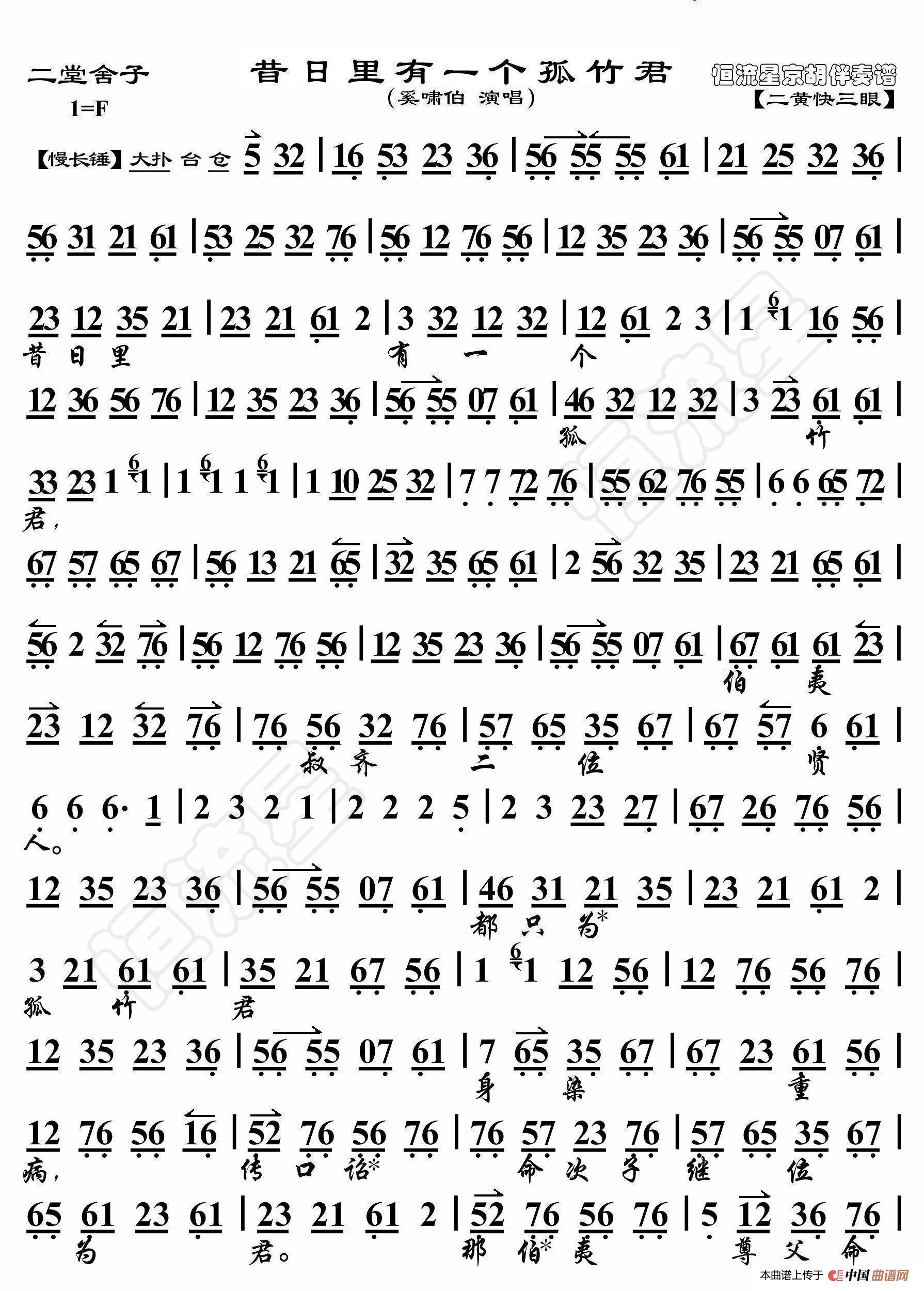 - 生死恨·耳边厢又听得初更鼓响(京胡伴奏谱)