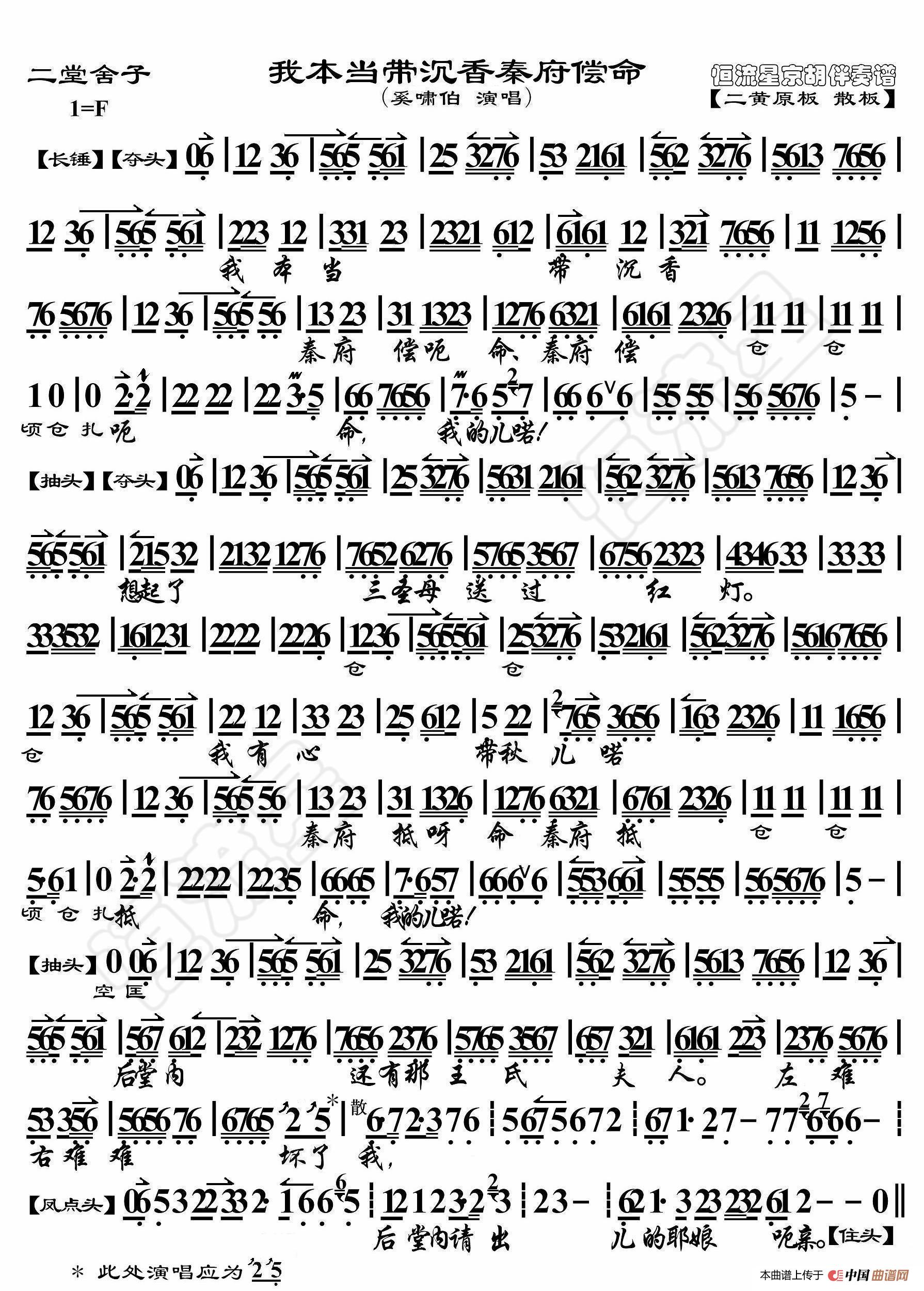 - 廉锦枫·为娘亲哪顾得微躯薄命(京胡伴奏谱)