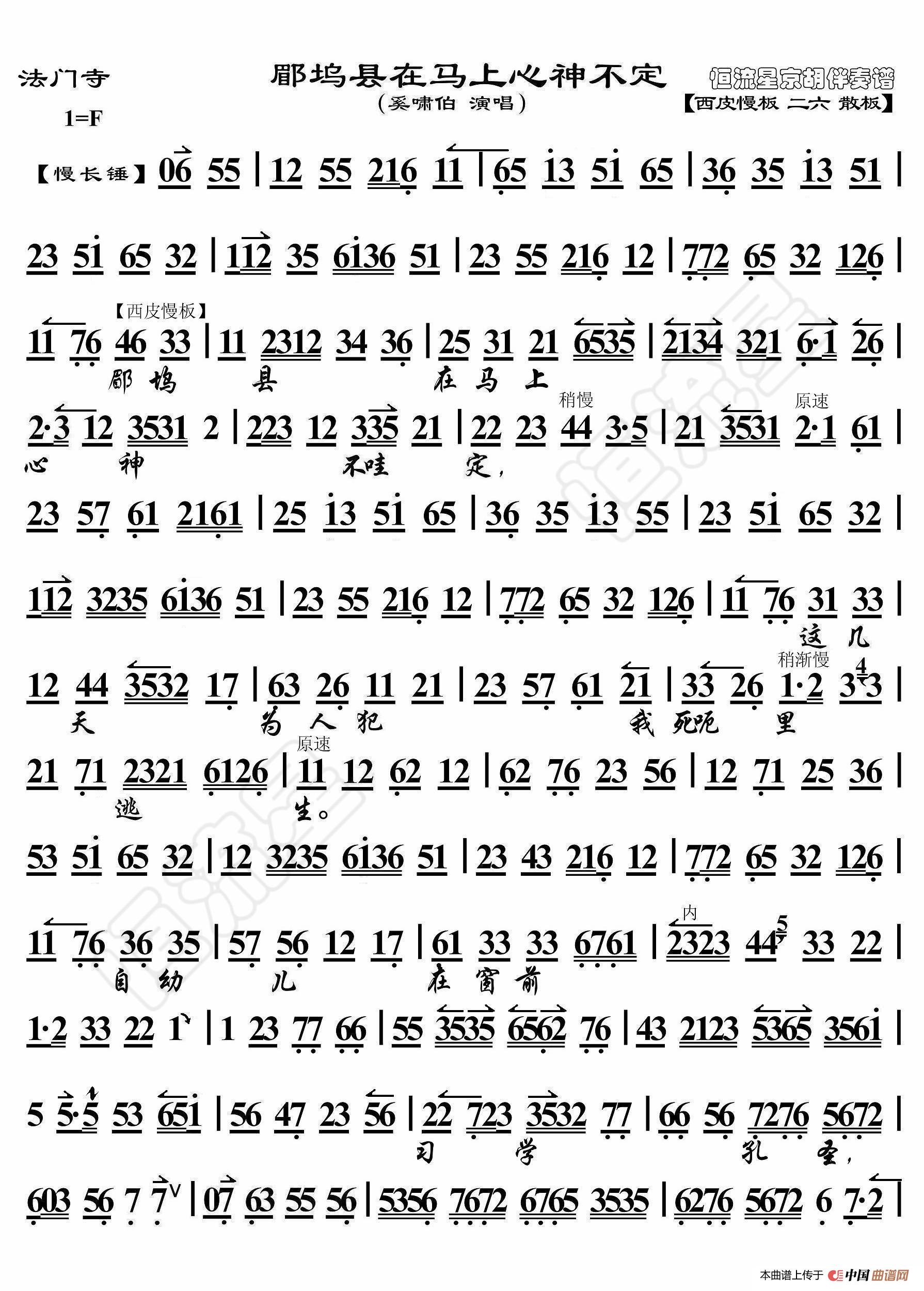 - 二进宫·铜锤一举娘娘请上(京胡伴奏谱)