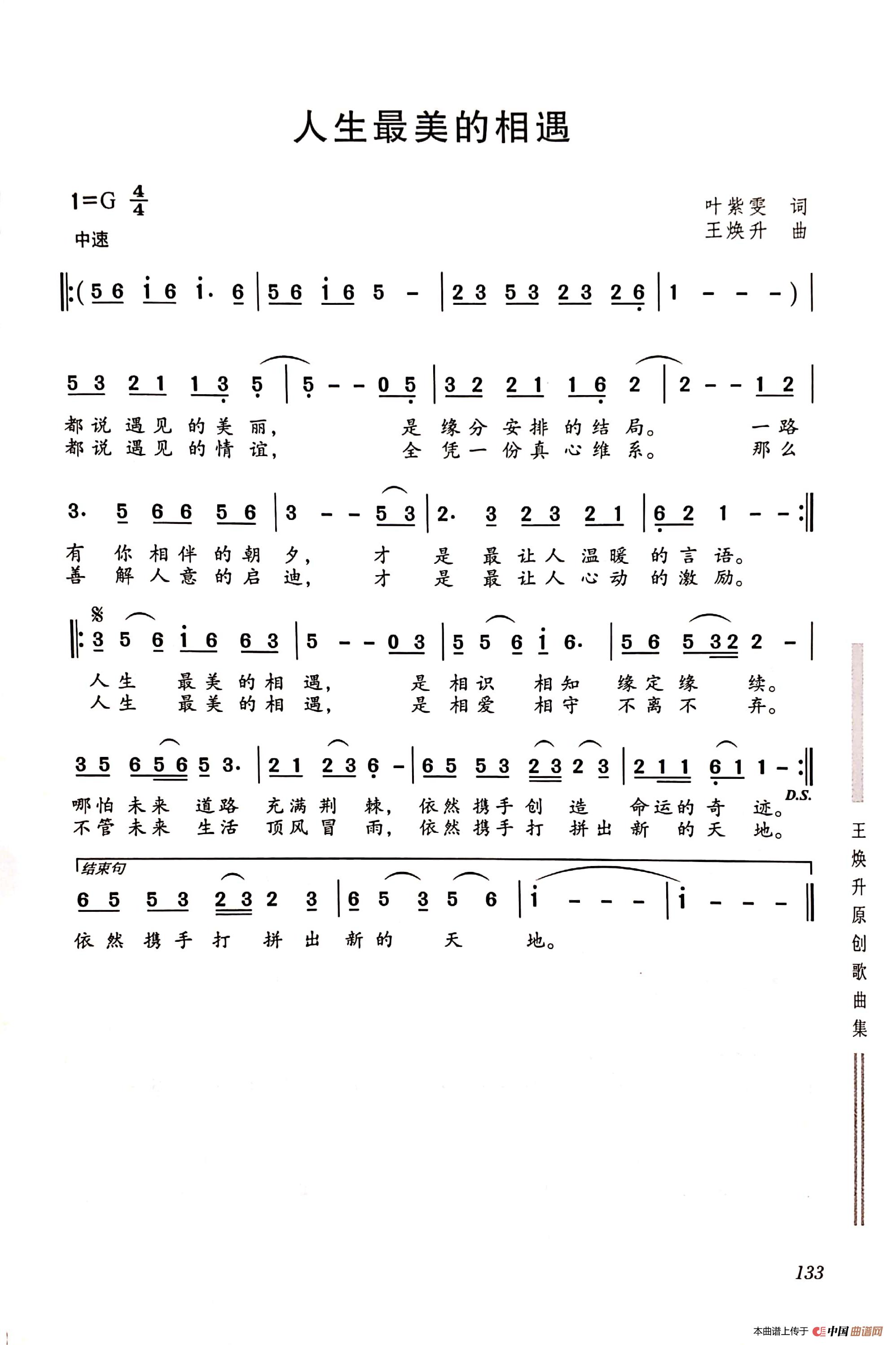 人生最美的相遇相关五线谱