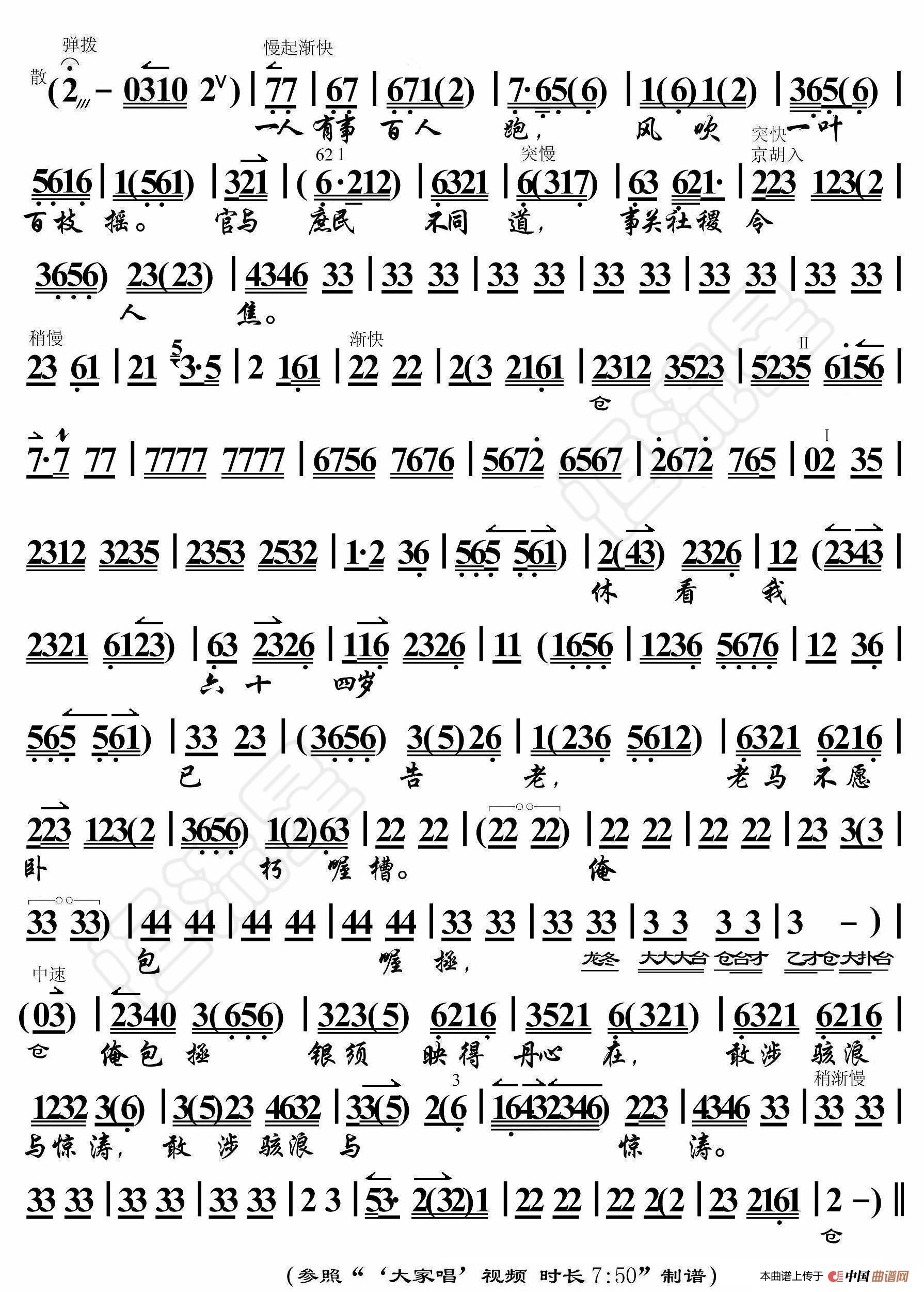 - 海瑞罢官·老人家你随我饱经忧患(京胡伴奏谱)