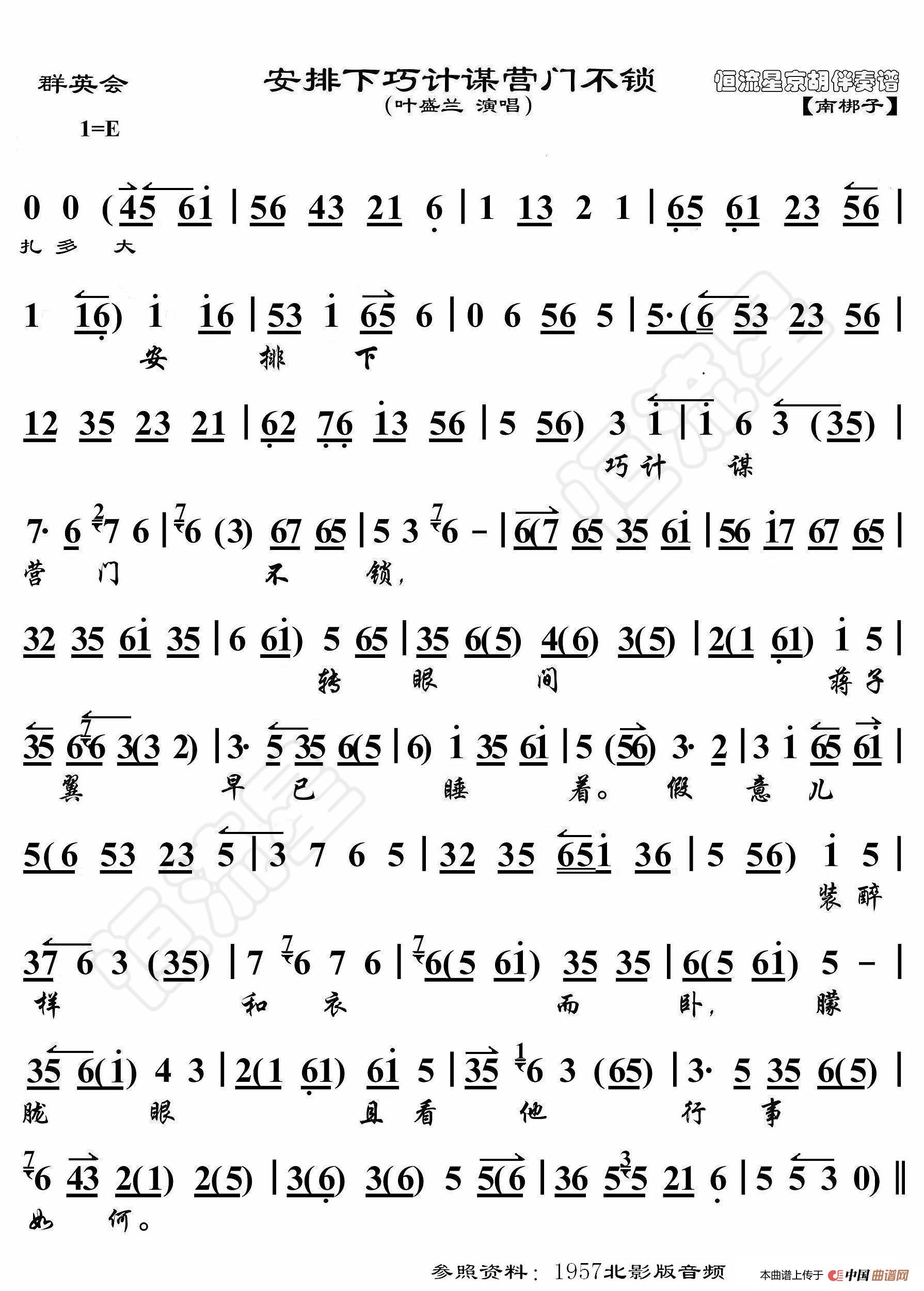 - 龙凤呈祥·昔日梁红配孟光(京胡伴奏谱)