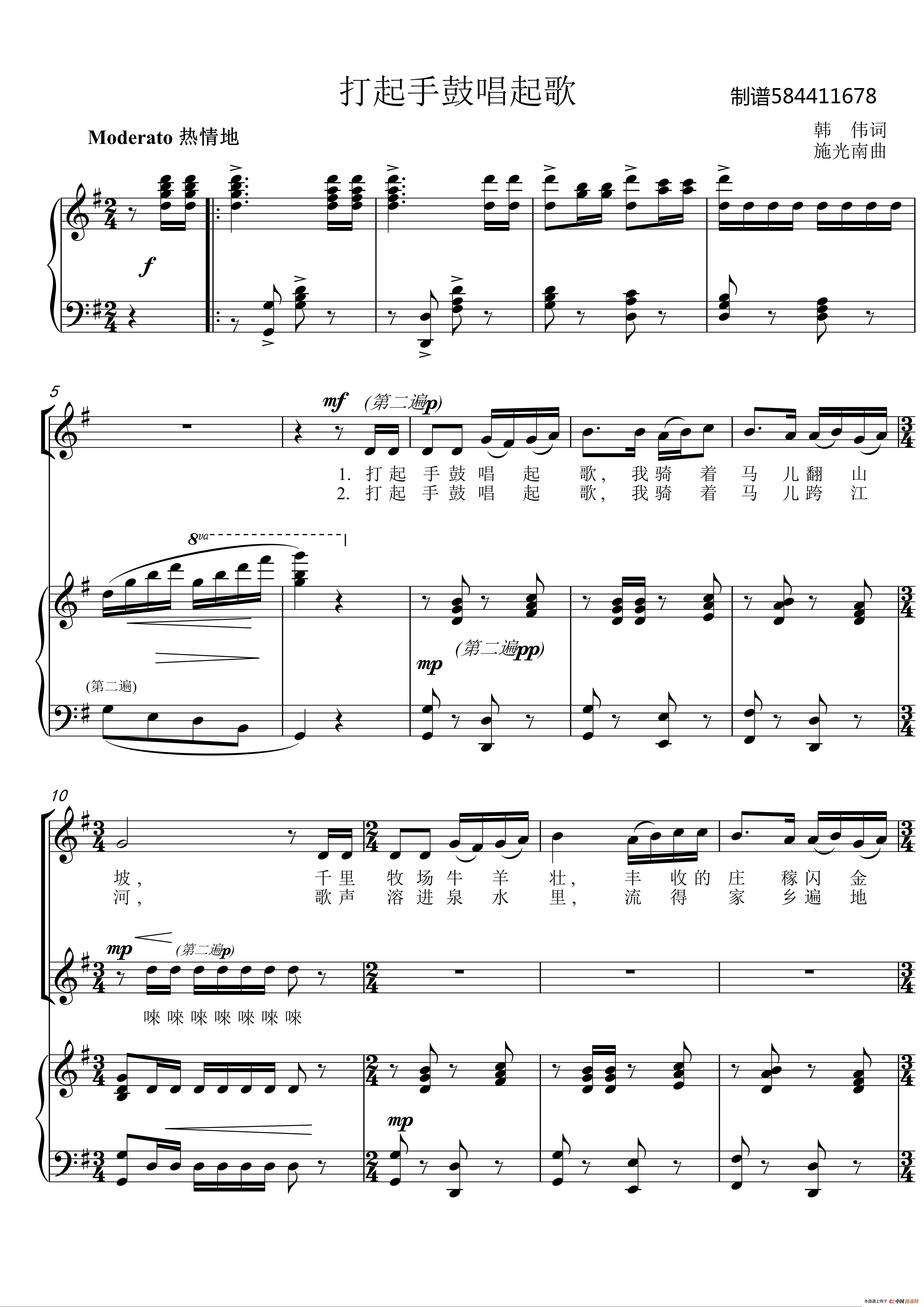 施光南曲谱推荐家乡有棵相思柳(关牧村)月光下的凤尾竹(葫芦丝完整版)打起手鼓唱起歌(电子琴弹唱谱)灿烂的明天在哪里初冬(正谱)多情的土地(任志萍词 施光南曲、正谱)绿宝石之歌(叙事套曲《传奇的绿宝石》之三)在希望的田野上补衣歌(正谱)月光下的凤尾竹在希望的田野上合唱谱(混声四部)洁白的羽毛寄深情吐鲁番的葡萄熟了晒太阳(杨锡迎词 施光南曲)红棉摇篮曲我的祖国妈妈(正谱)假如你要认识我假如你要认识我(单簧管)摇篮曲(施光南作曲版)在清清的泉水旁(女声二重唱)