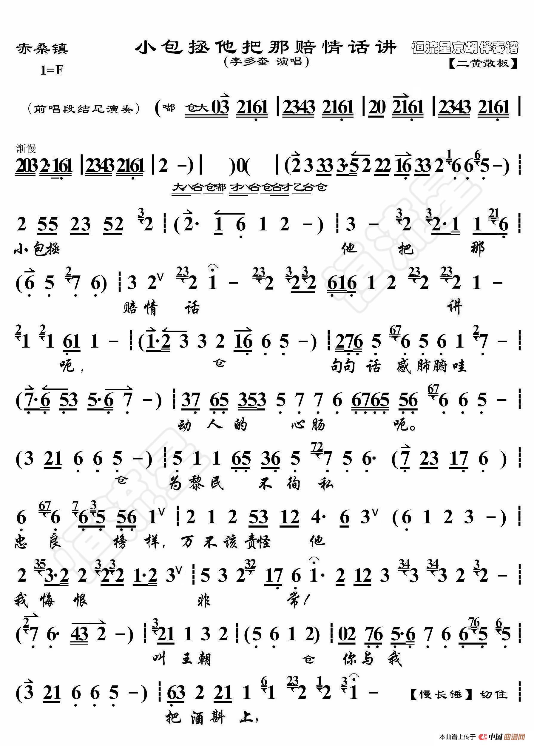 - 乌龙院·郓城县打鼓退了堂(京胡伴奏谱)