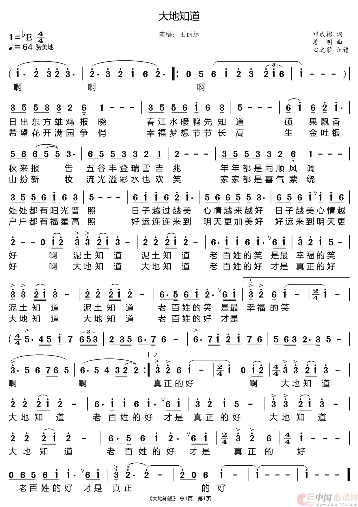 大地知道(王丽达)相关五线谱