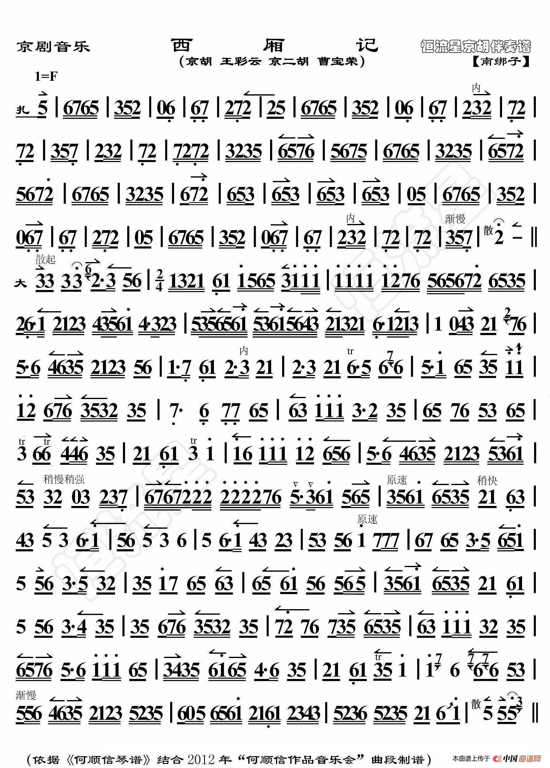 - 彩楼记·前呼后拥出府门(京胡伴奏谱)