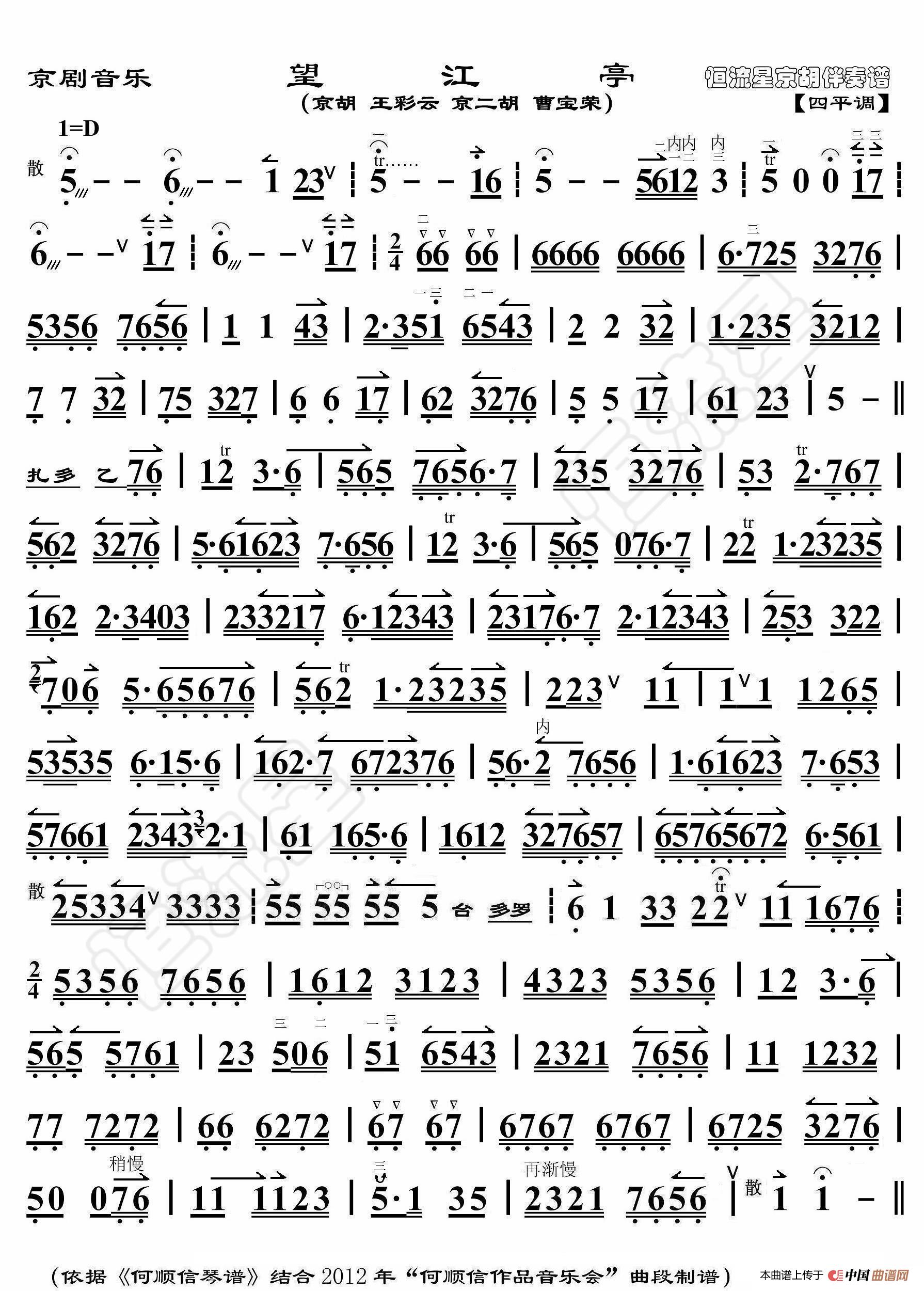 - 龙江颂·望北京更使我增添力量(京胡伴奏谱)