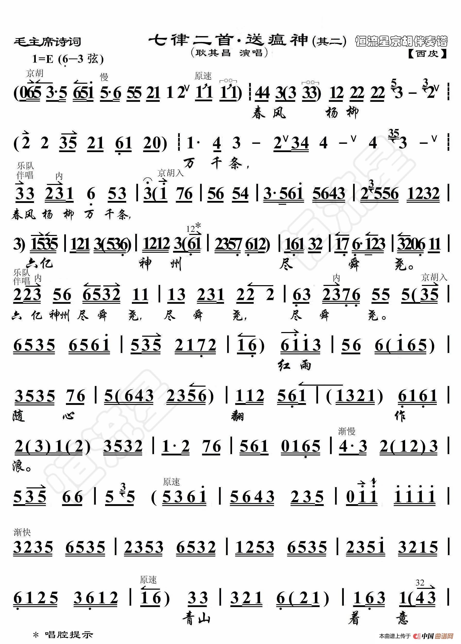 - 毛主席诗词·卜算子·咏梅(版本二)(京胡伴奏谱)