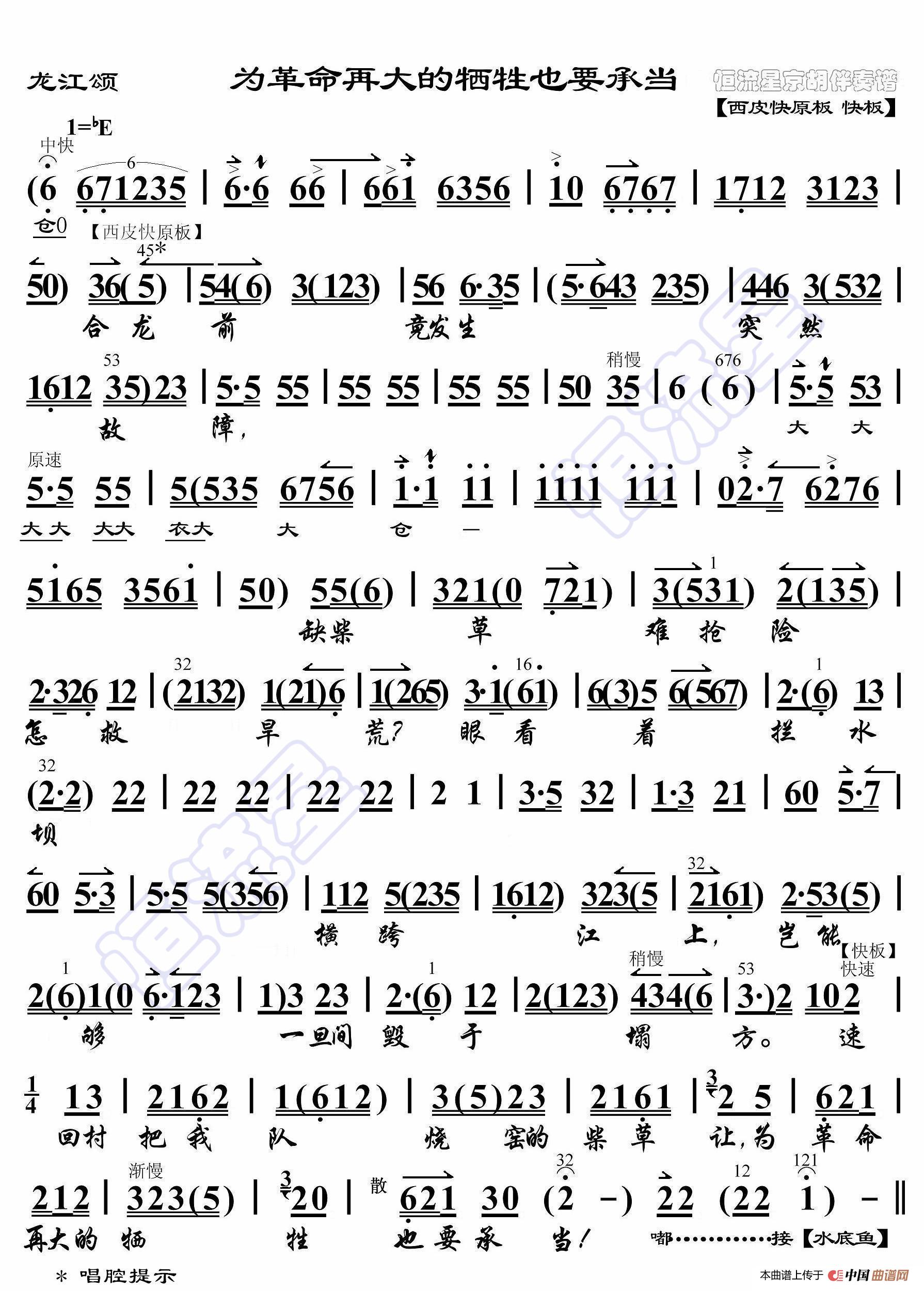 - 龙江颂·望北京更使我增添力量(京胡伴奏谱)