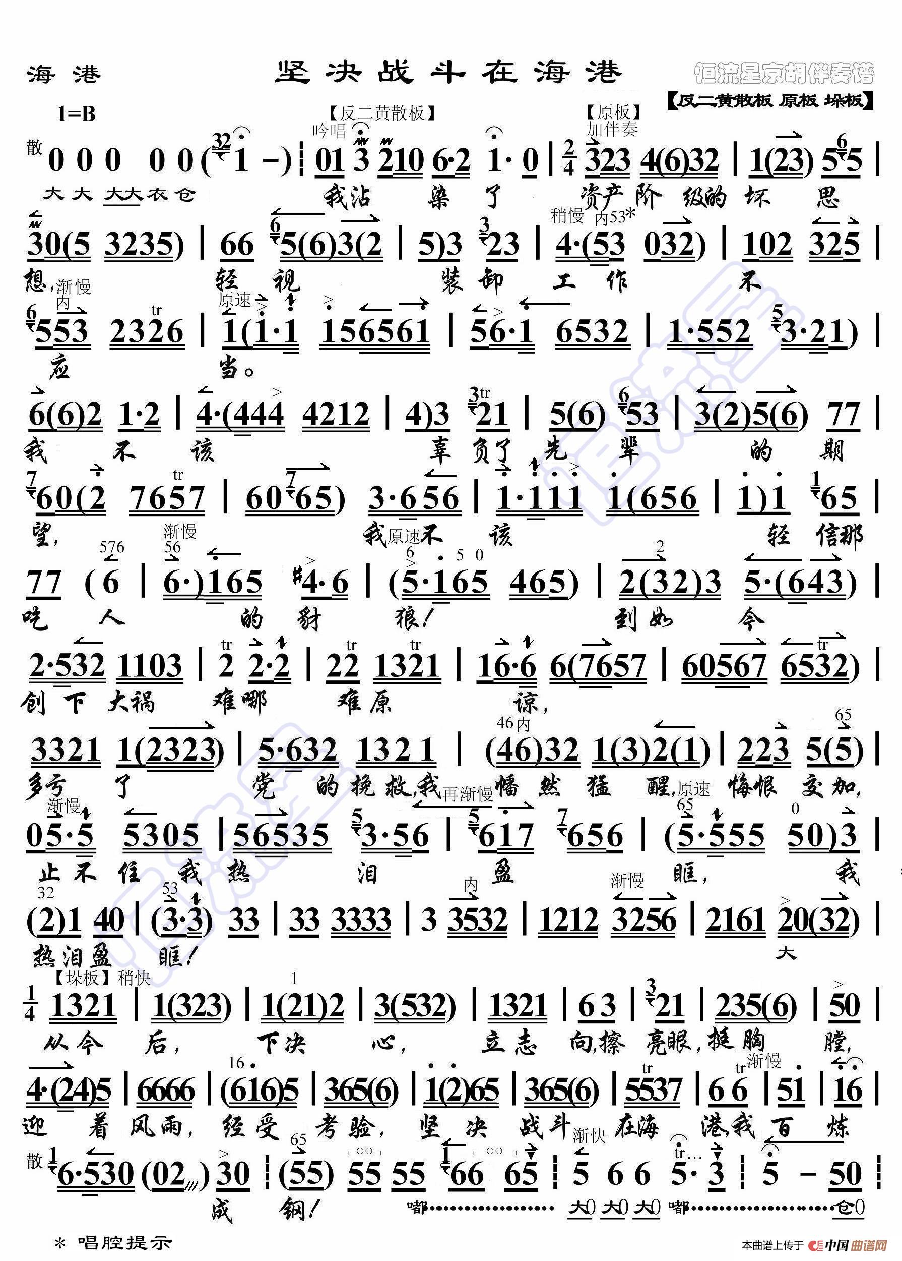 - 海港·暴风雨更增添战斗豪情(京胡伴奏谱)