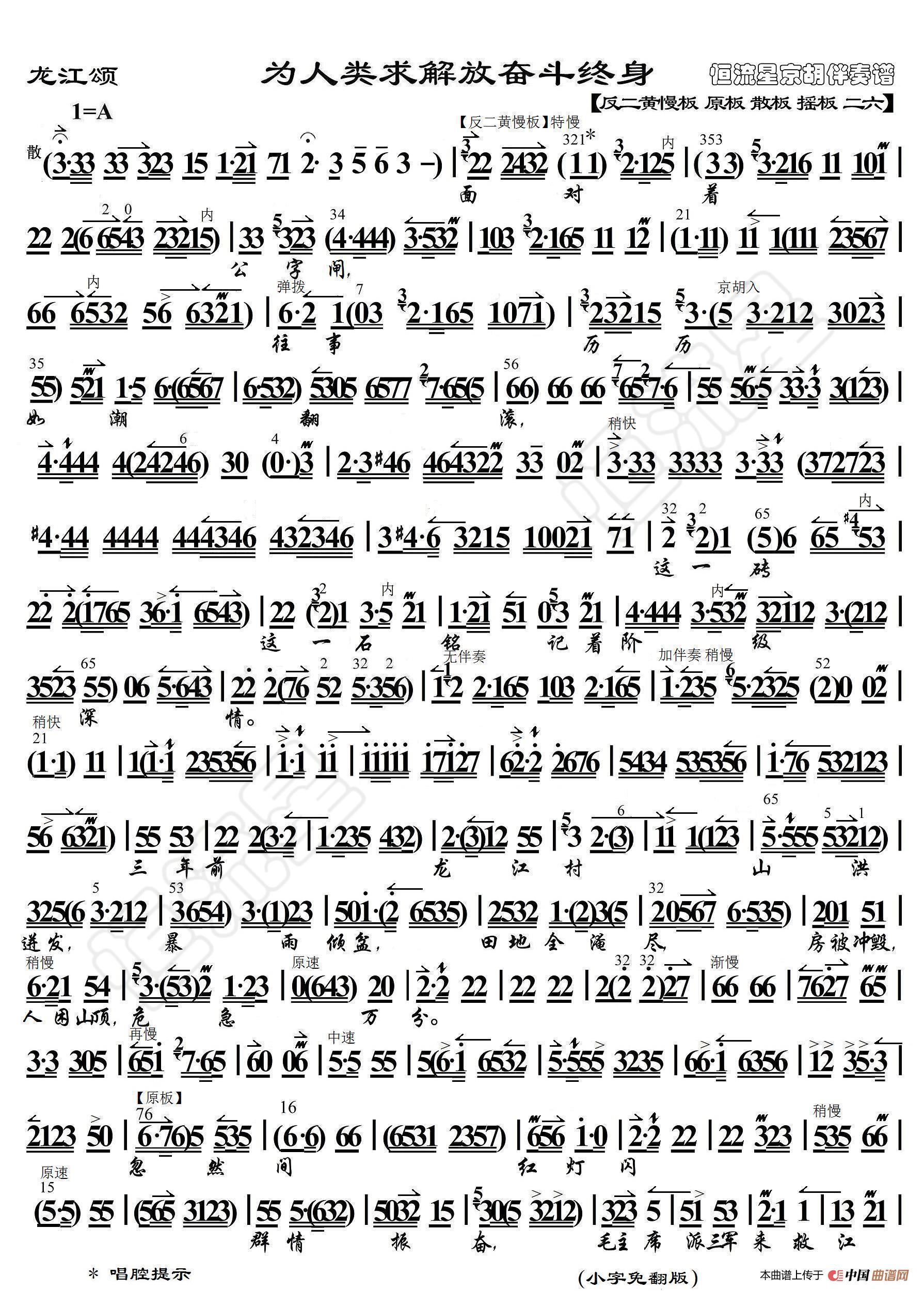 - 毛主席诗词·蝶恋花·答李淑一(京胡伴奏谱)