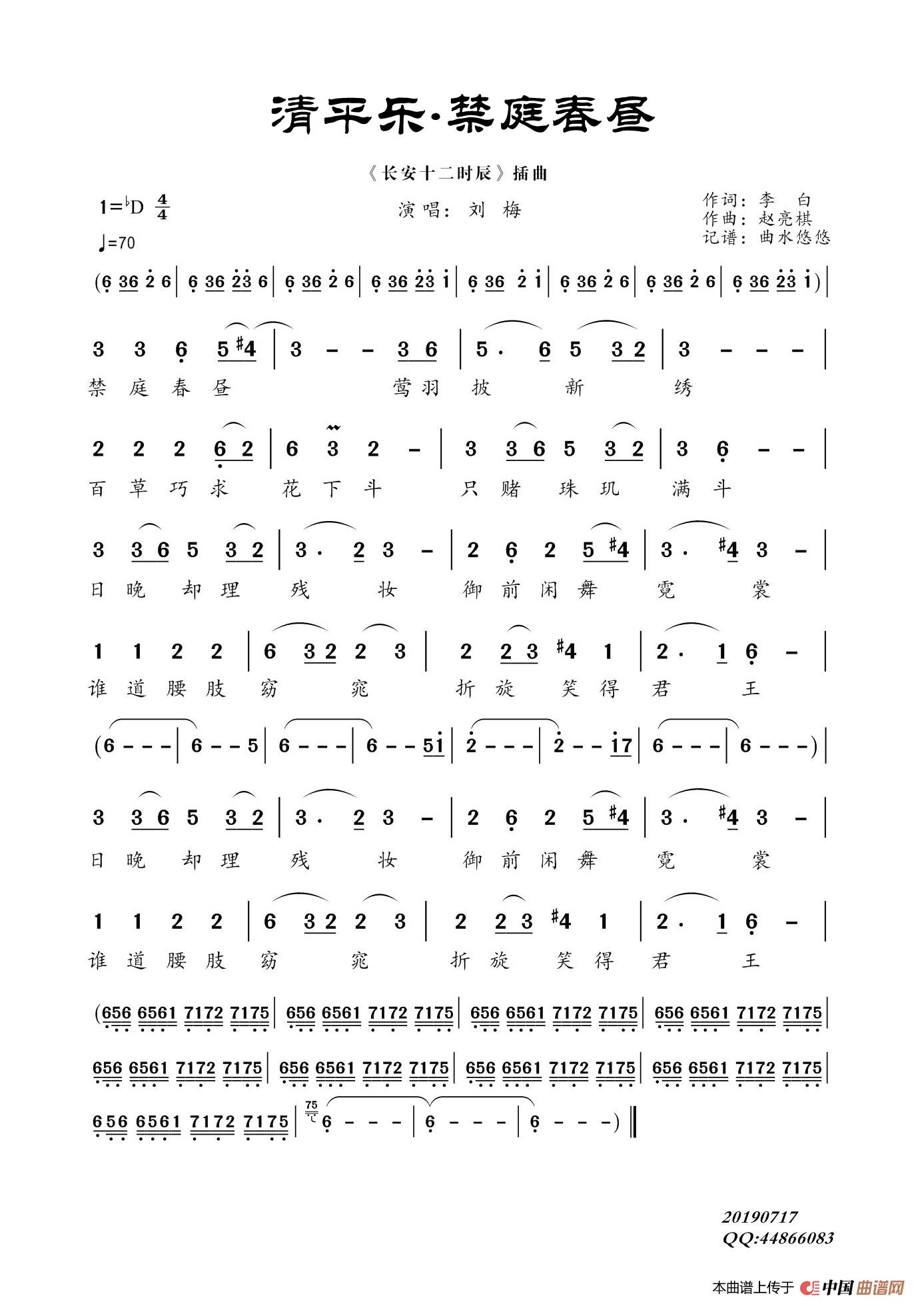 清平乐-禁庭春昼(长安十二时辰片尾曲)相关五线谱
