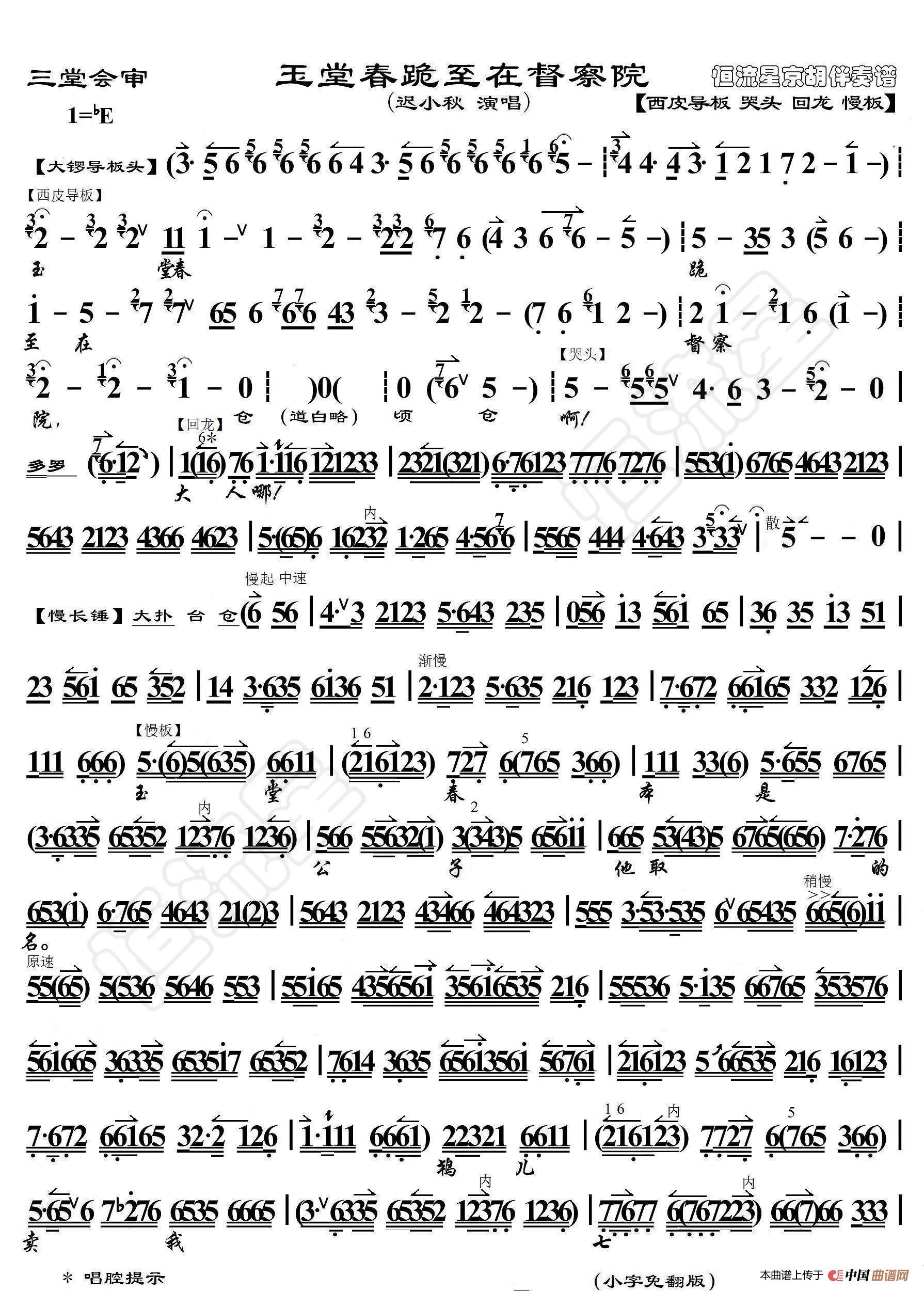 - 遇皇后·宋王爷坐江山人称有道(京胡伴奏谱)