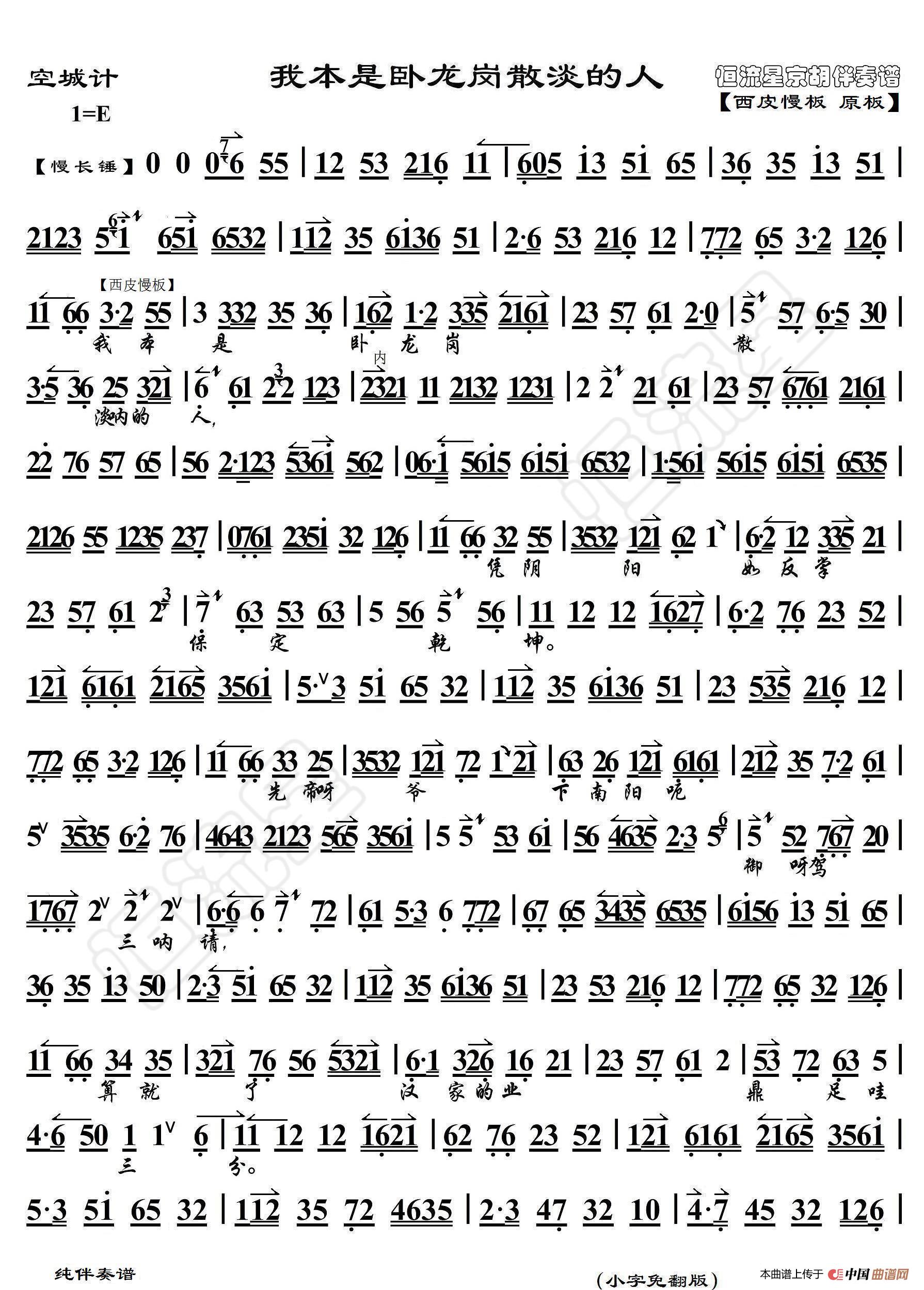 - 空城计·我正在城楼观山景(京胡伴奏谱)