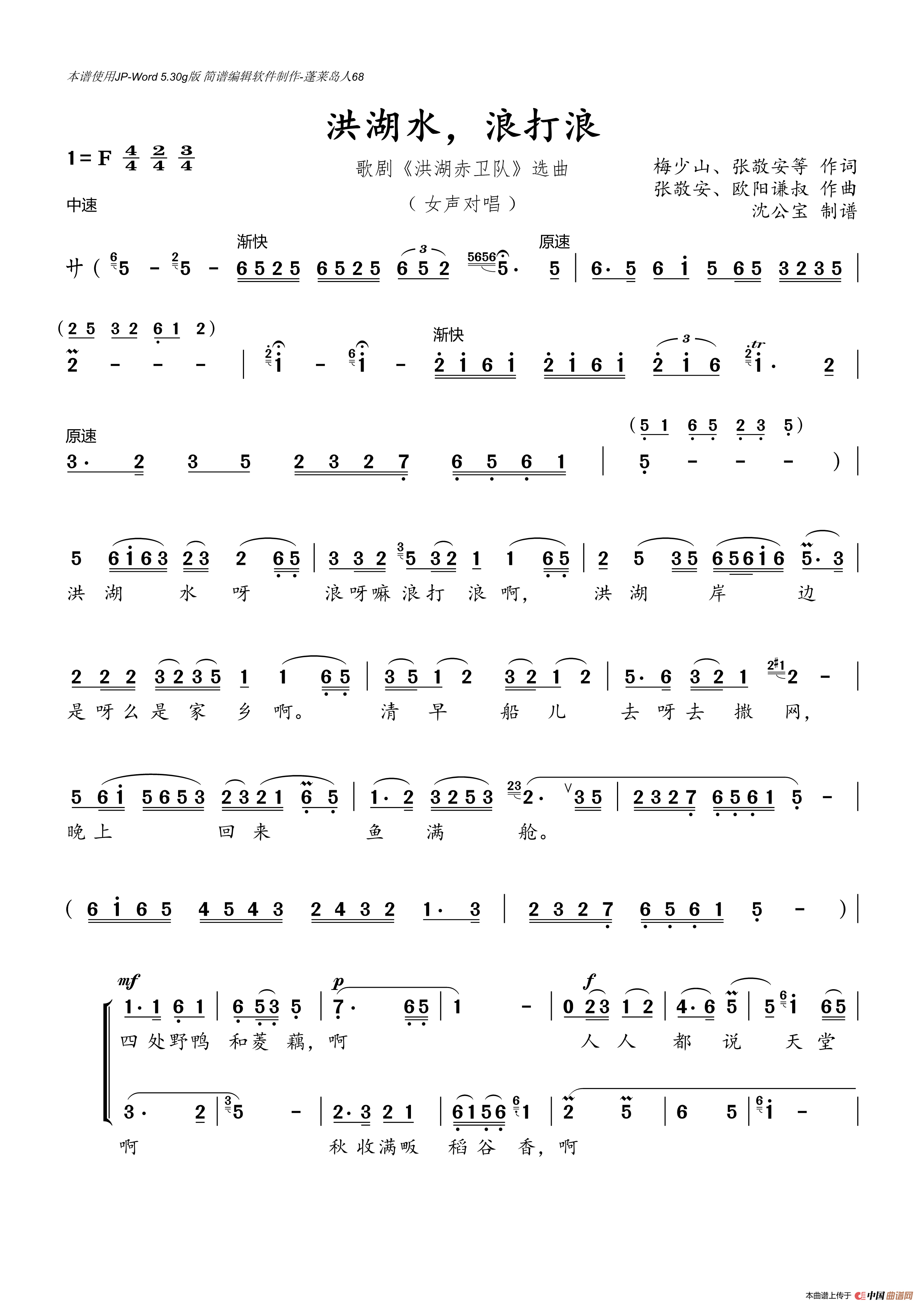 - 洪湖水浪打浪(老人适用)