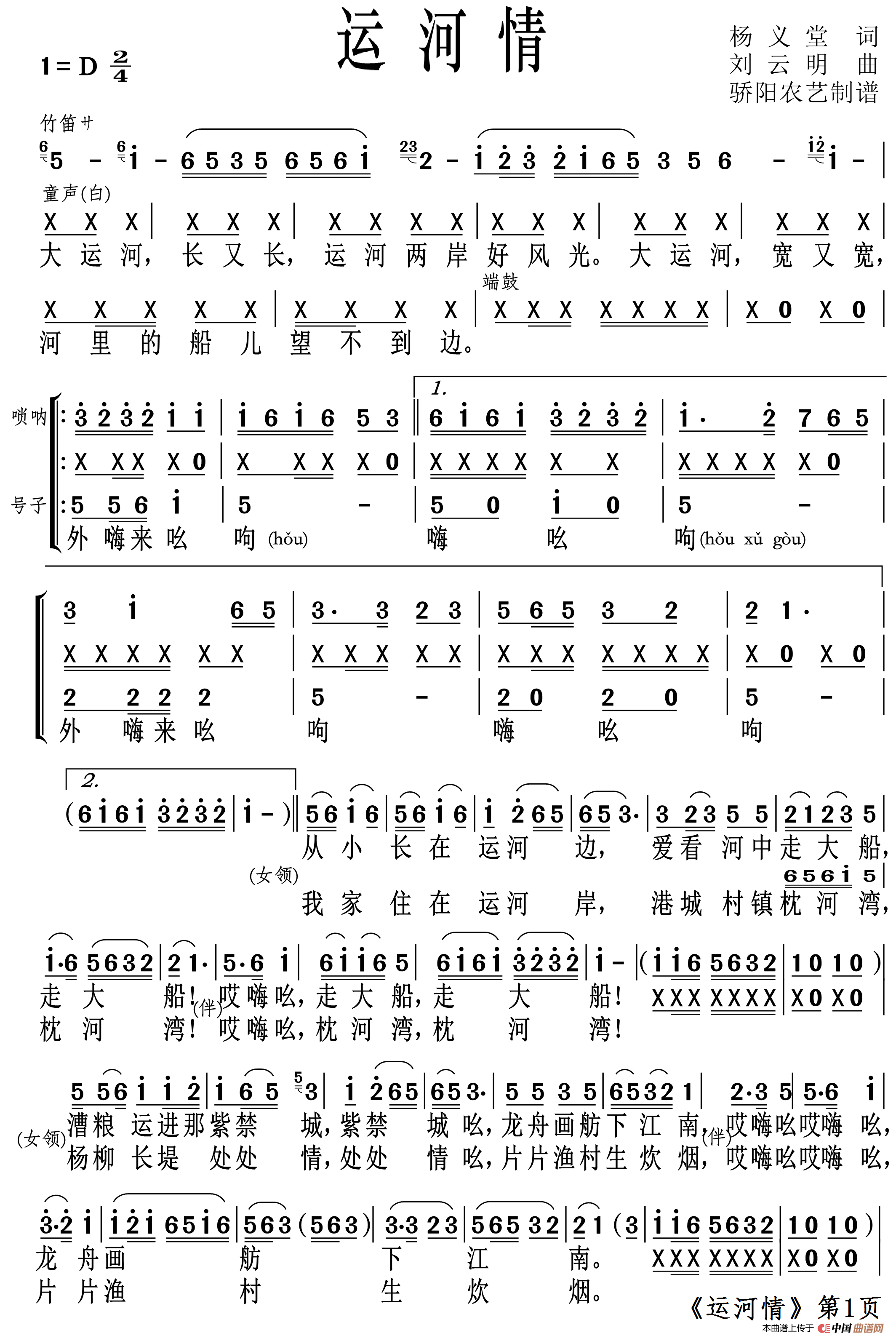 运河情相关五线谱