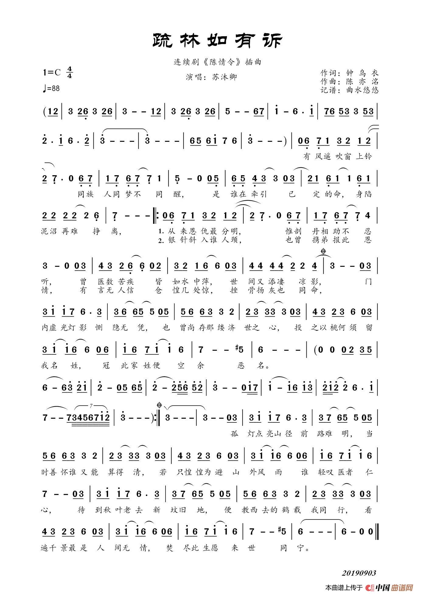 疏林如有诉(连续剧《陈情令》插曲)相关五线谱