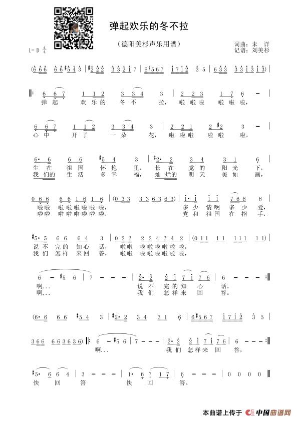 弹起欢乐的冬不拉相关五线谱