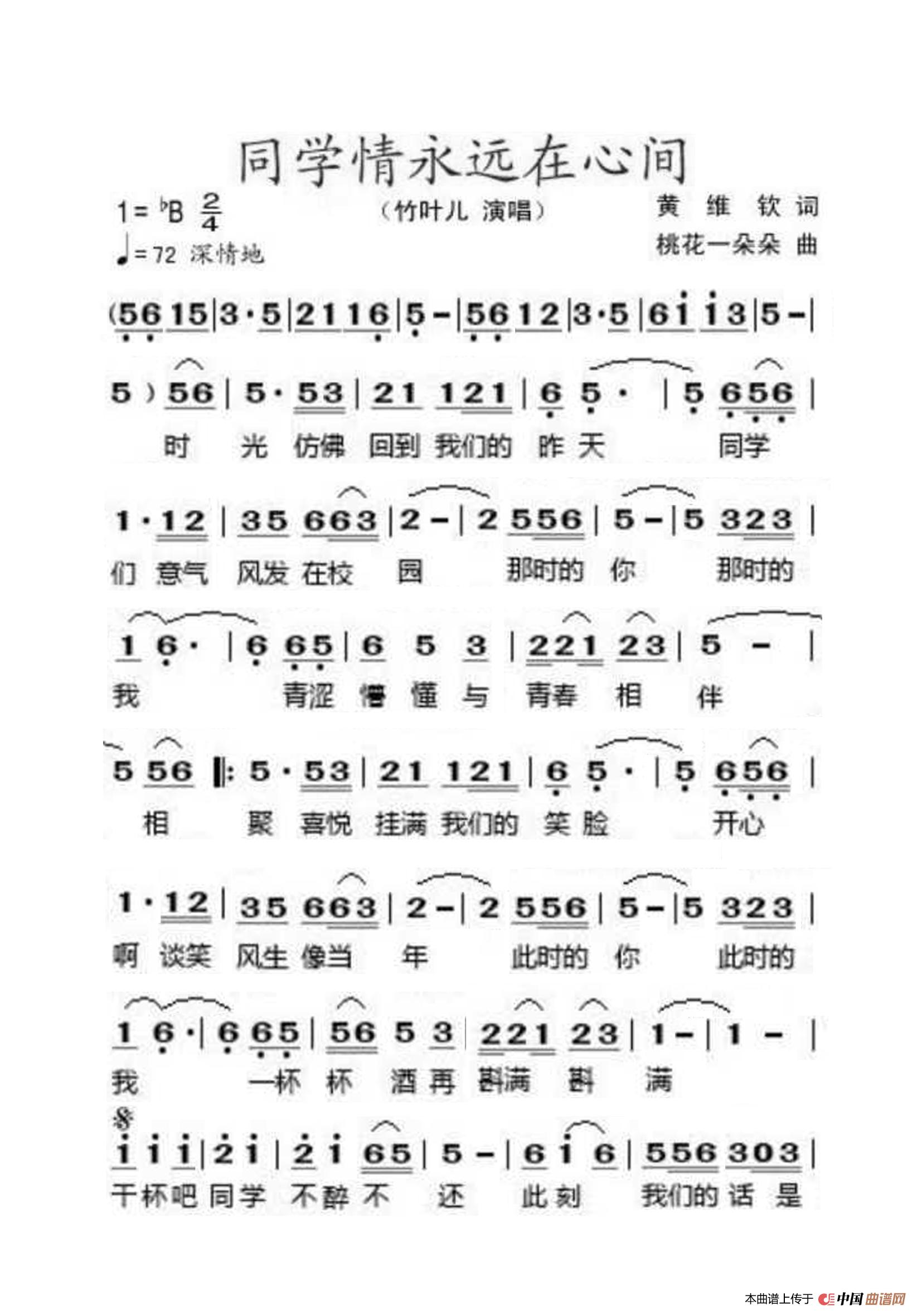 同学情永远在心间(大字老人适用)相关五线谱
