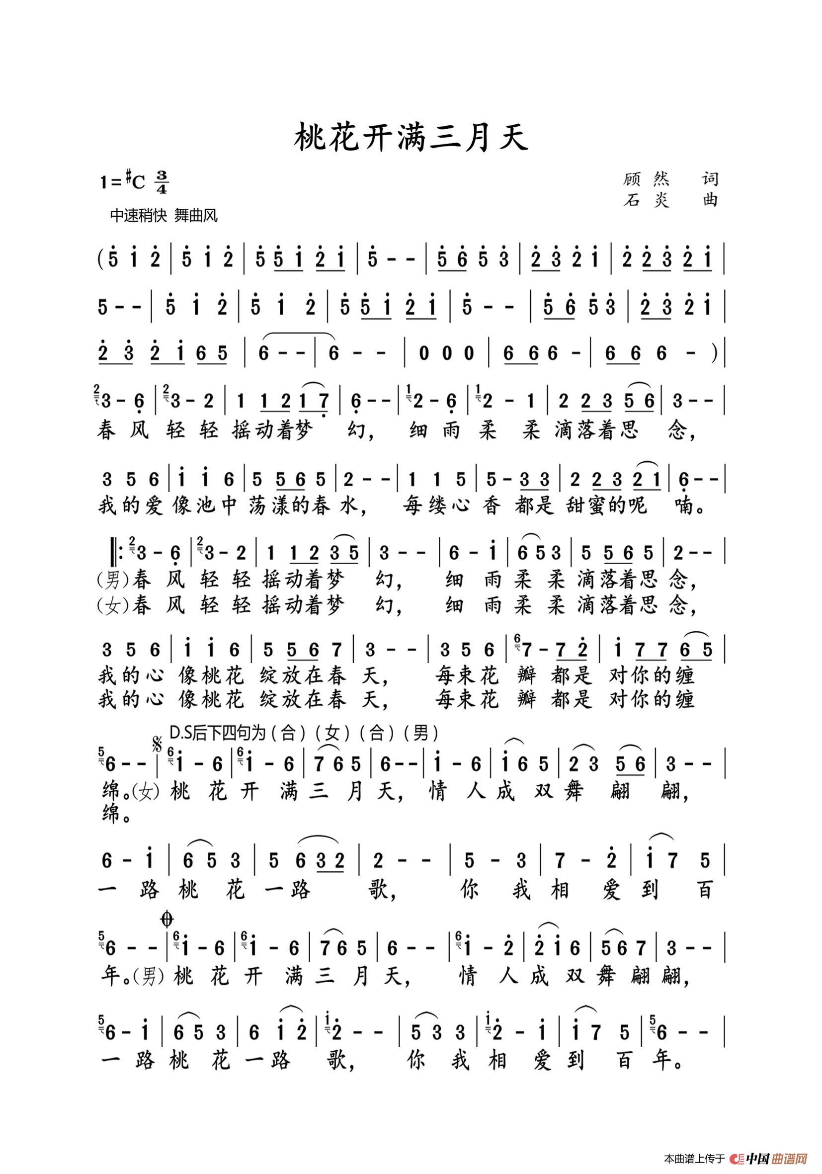 桃花开满三月天(大字老人适用)相关五线谱