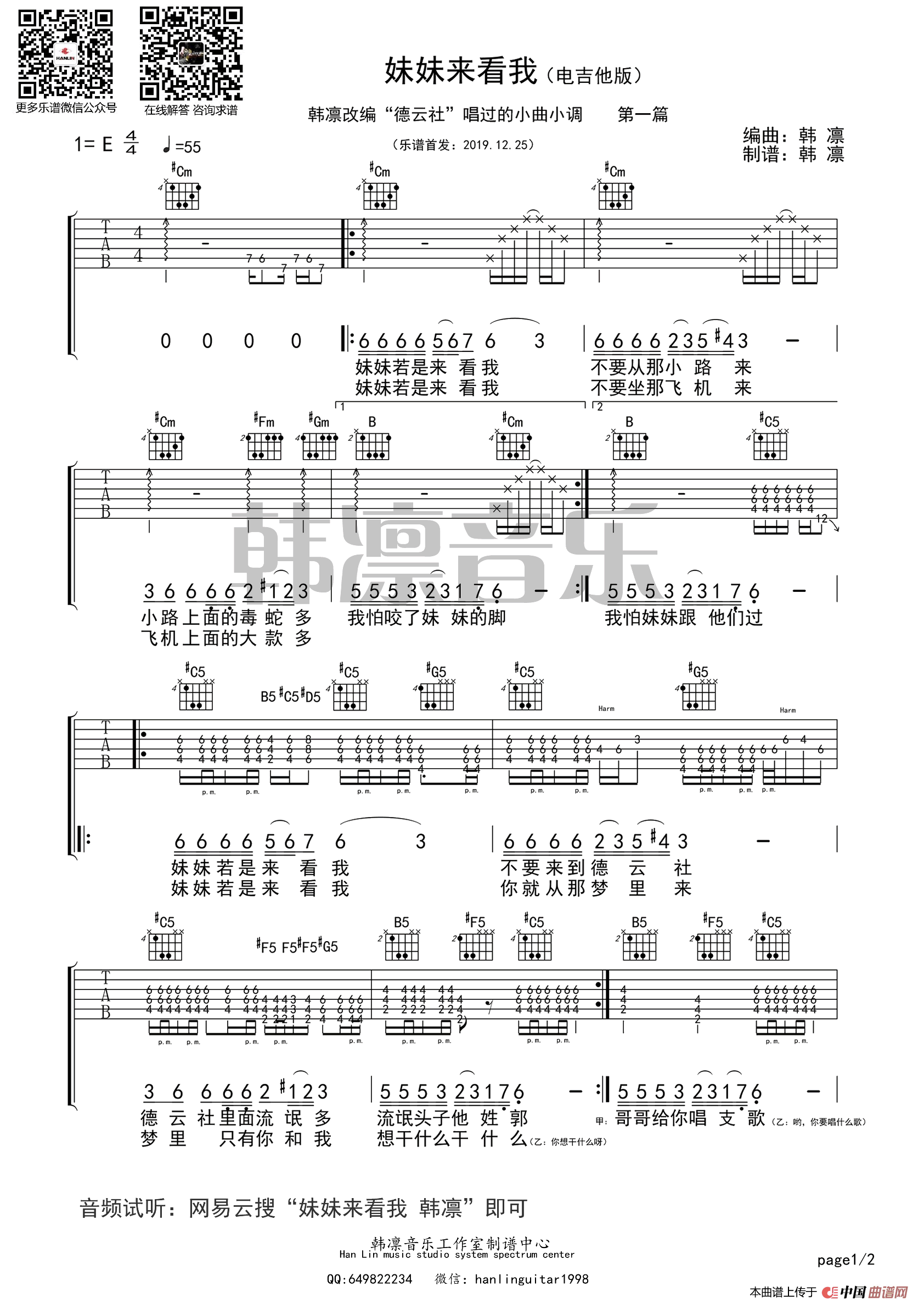 妹妹来看我(电吉他谱、韩凛编配)相关五线谱