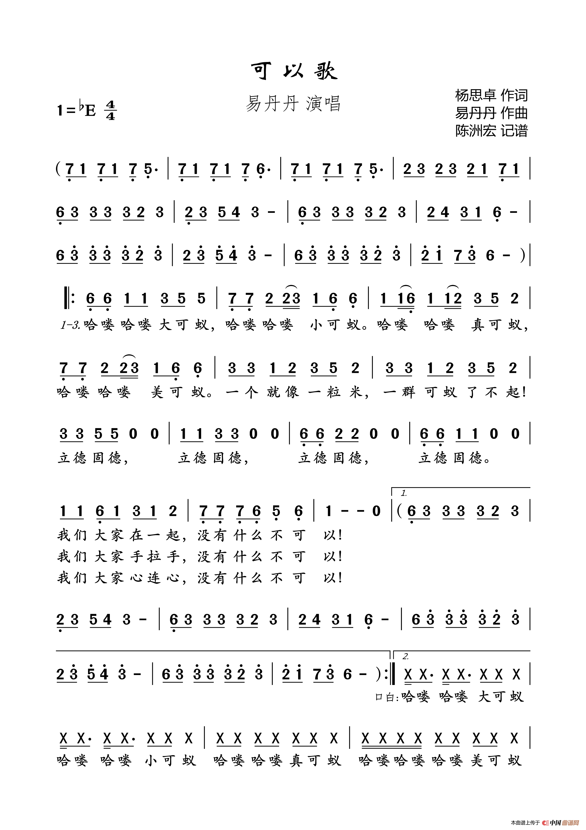 可以歌相关五线谱