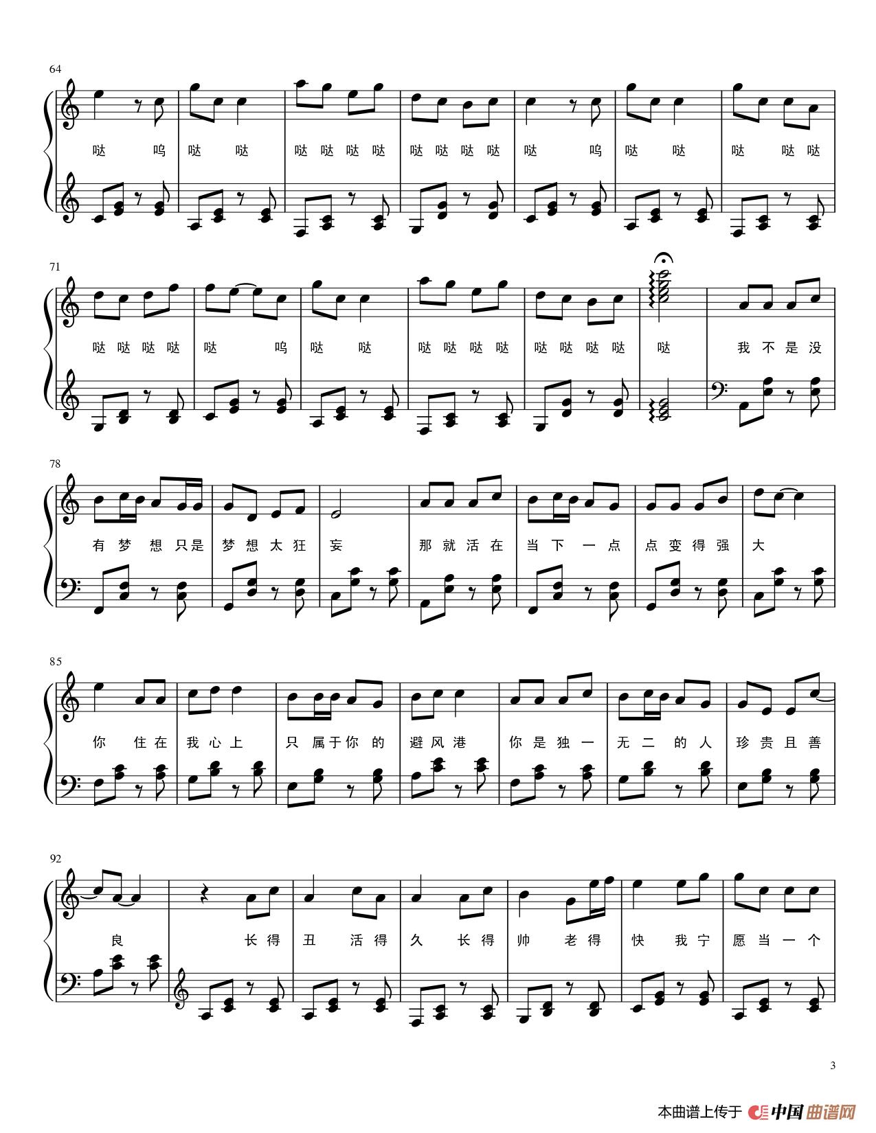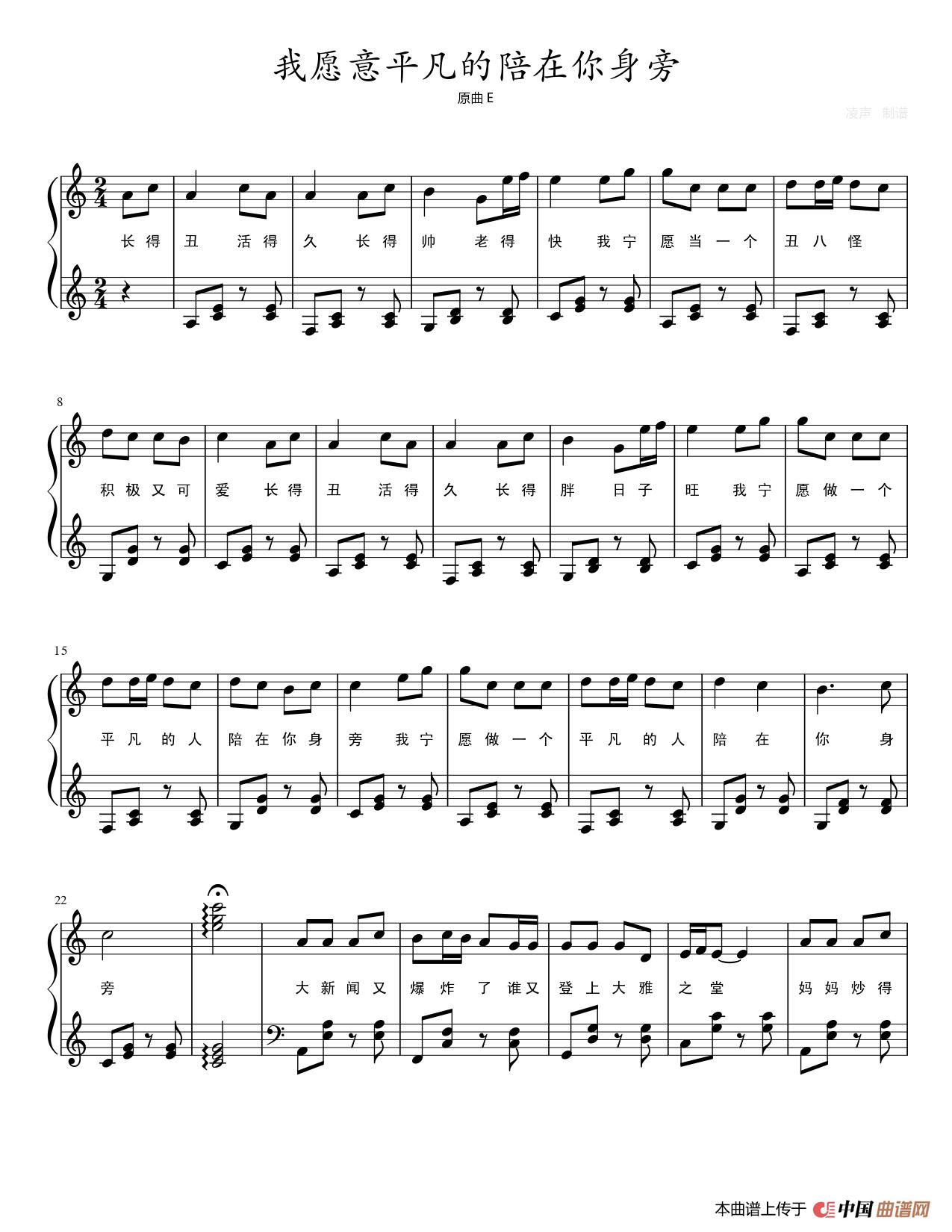 我愿意平凡的陪在你身旁(钢琴谱)相关五线谱