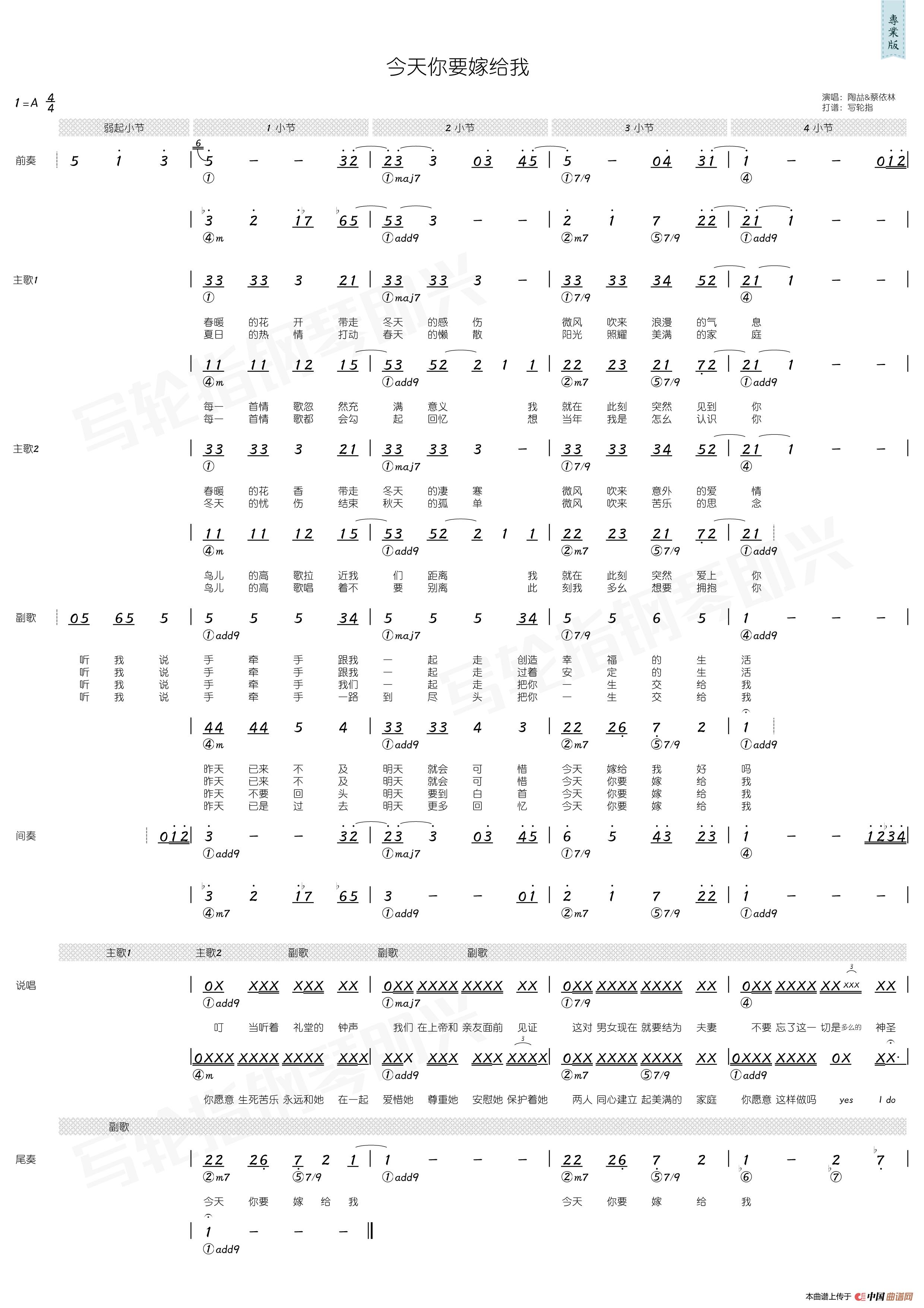 陶喆曲谱推荐今天你要嫁给我(编配乐谱)Susan 说寂寞季节爱我还是他爱很简单(弹唱谱)Melody别爱我 像爱个朋友(延麟编配版)今天你要嫁给我爱很简单(简和谱)寂寞的季节你的歌(陶喆词曲)爱我还是他流沙(简和谱)哎哟爱哟(双声部歌谱)Angel太美丽就是爱你今天你要嫁给我(架子鼓、简谱+鼓谱)追普通朋友