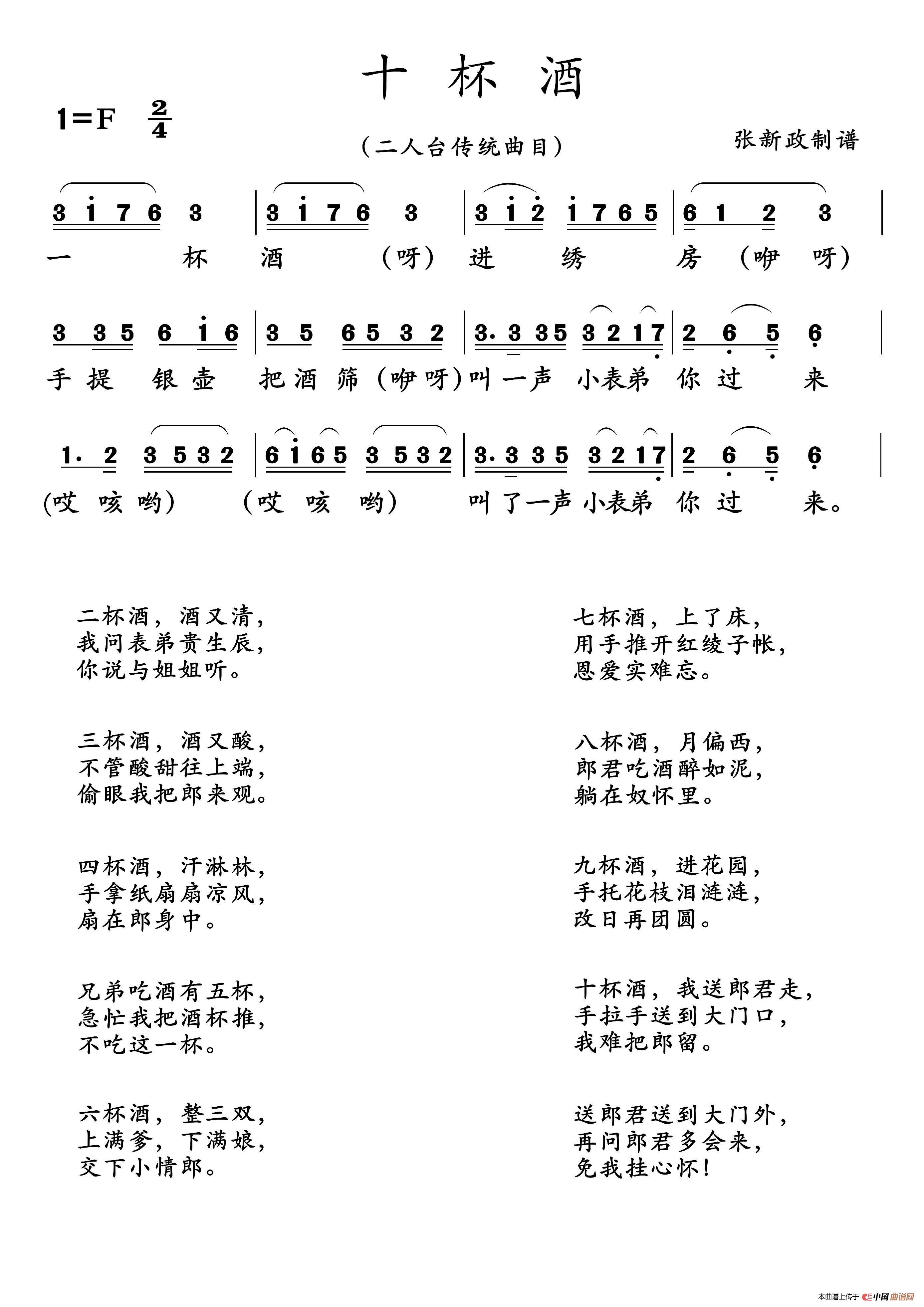 十杯酒(二人台传统曲目)相关五线谱