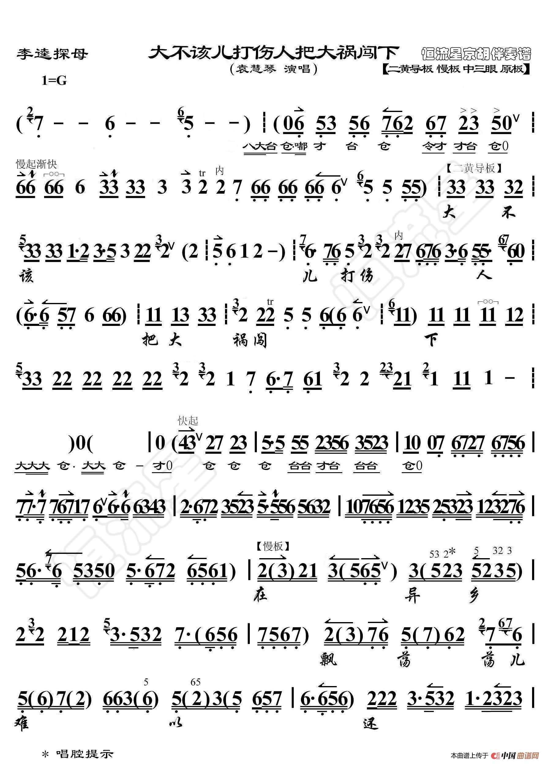 - 女起解·低头离了洪洞县(京胡伴奏谱)