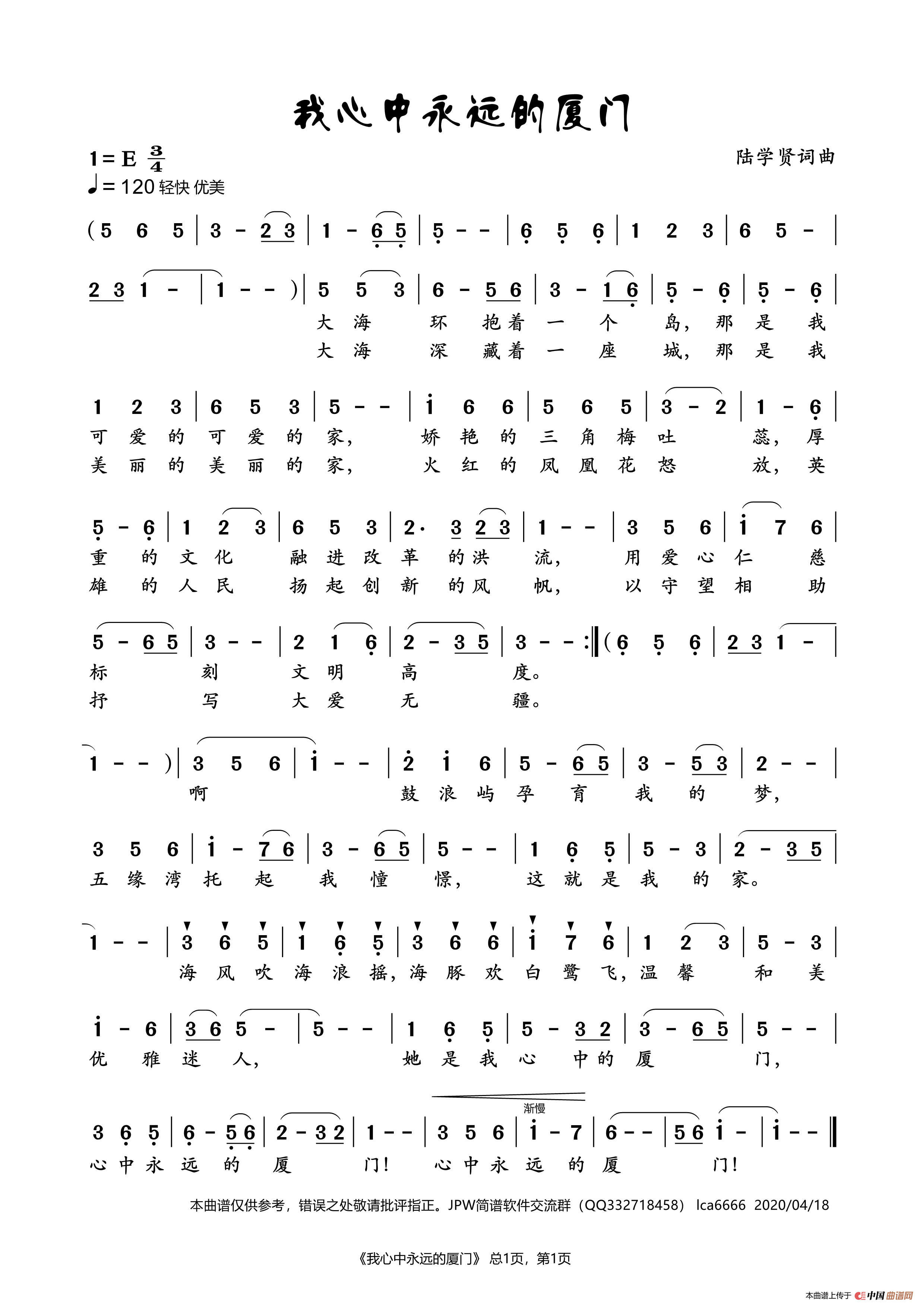 祖国永在我心中(赵兰词 尚德义曲、正谱)